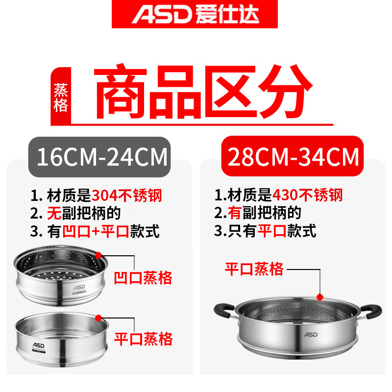 爱仕达蒸笼家用304蒸奶锅汤锅