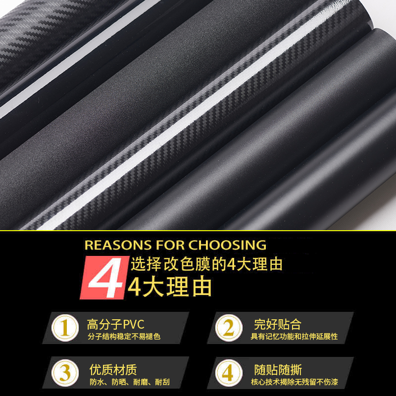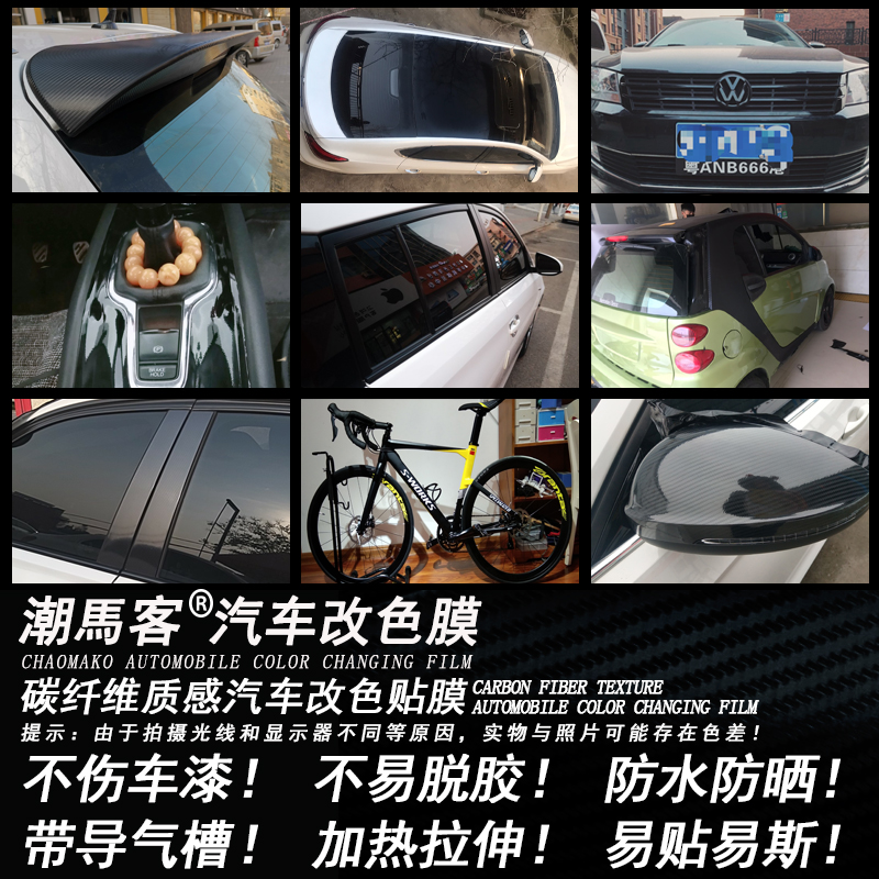 内饰车顶磨砂贴纸后视镜亮光黑贴膜碳纤维改色膜亚光汽车改装5D3D