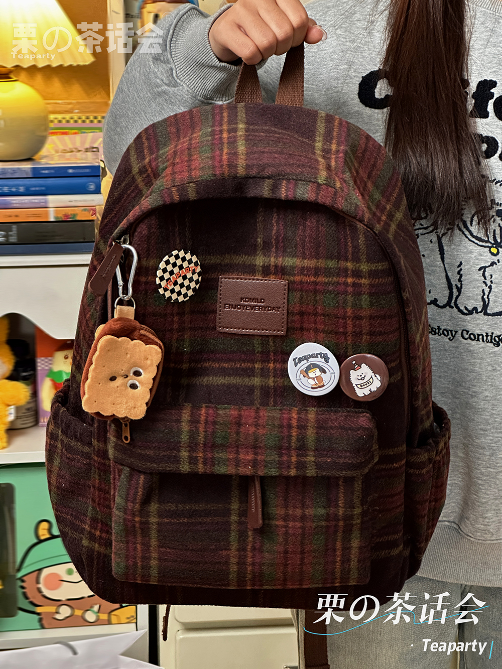 日系ins秋冬复古格子书包女 韩版高中学生初中生双肩包百搭小背包