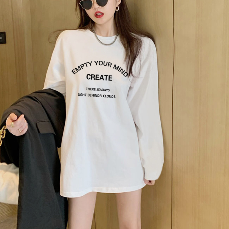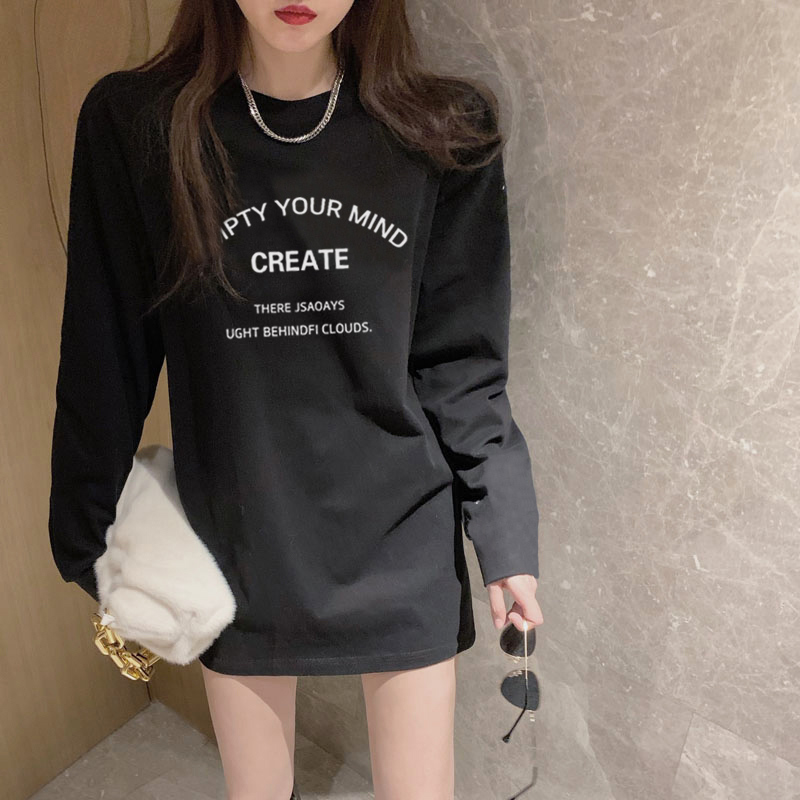 字母t恤女长袖2025秋冬新款中长款下衣失踪宽松韩版小众磨毛上衣