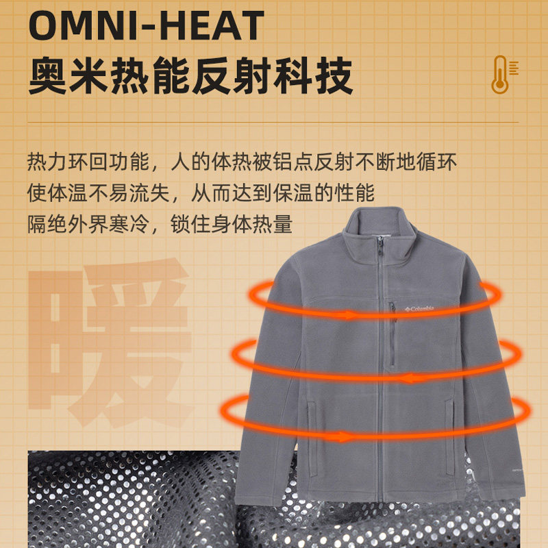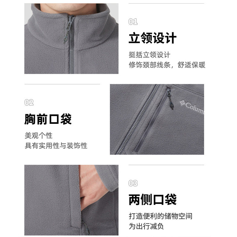 【自营】哥伦比亚保暖抓绒衣男冬新款立领夹克户外舒适运动服外套