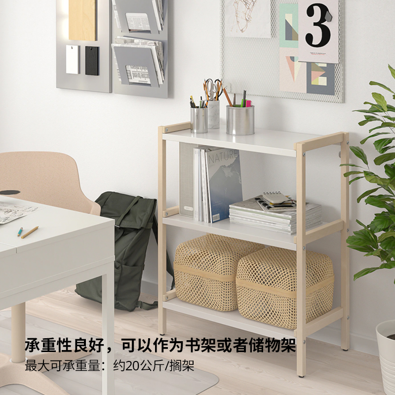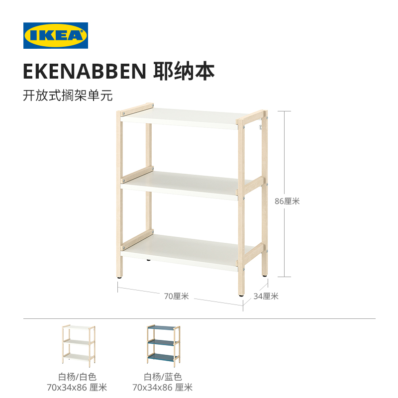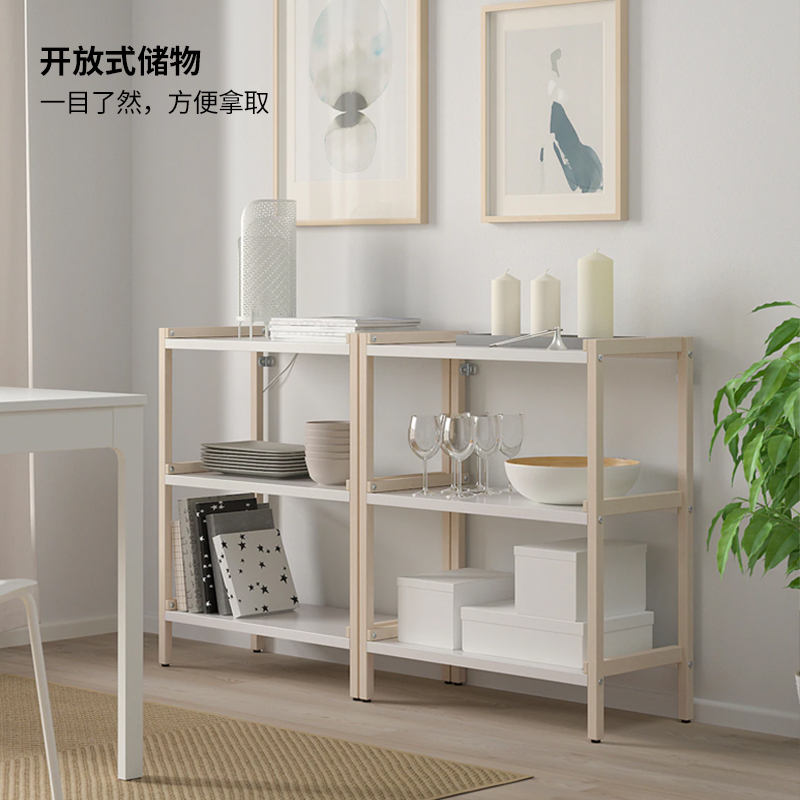 IKEA宜家EKENABBEN耶纳本开放式搁架实木金属架书柜置物架矮架