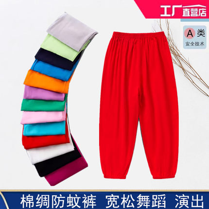 儿童防蚊裤纯棉绸夏季薄款女童灯笼裤红色男童长裤子宽松小孩睡裤
