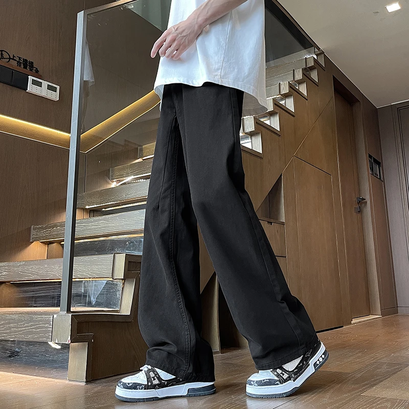 Cleanfit春夏美式高街男士黑色纯棉休闲裤宽松直筒阔腿男百搭长裤