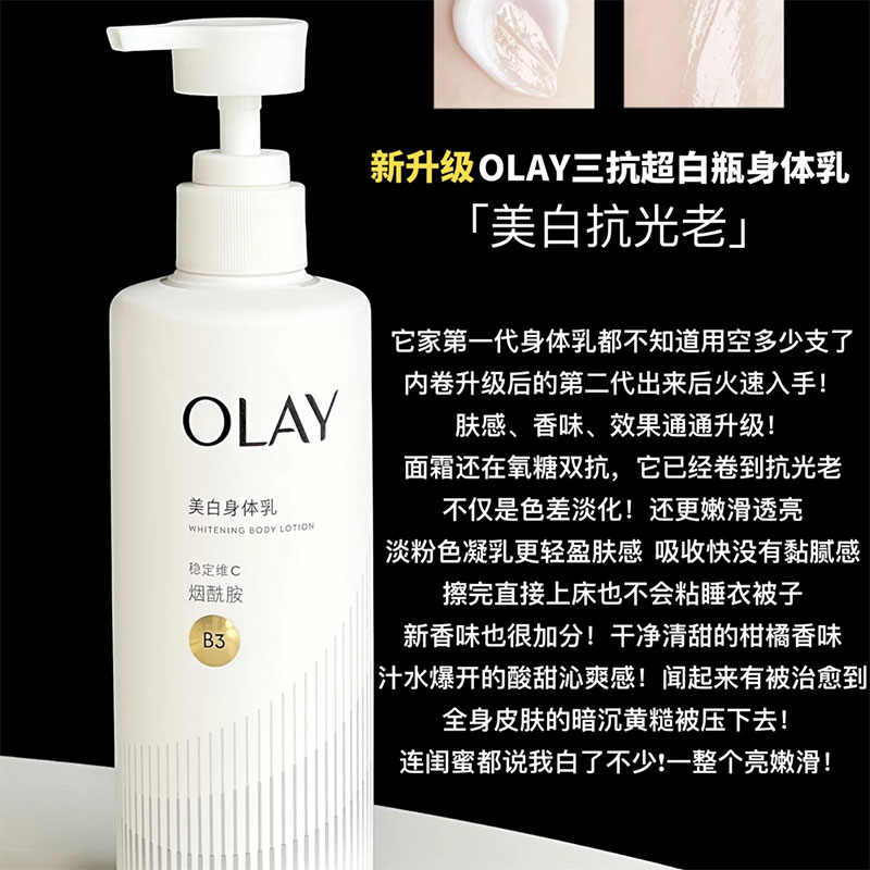 又又升级了~olay三抗超白瓶身体乳 烟酰胺美白保湿第二代小白瓶