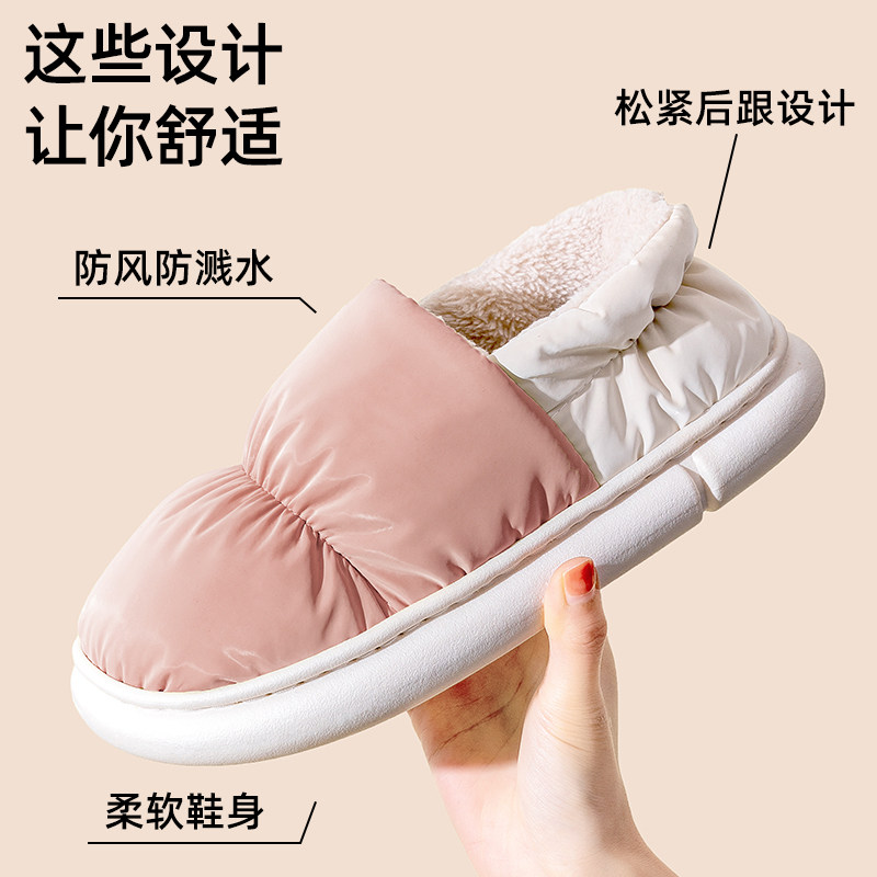 棉拖鞋女秋冬季可外穿加绒室内家居保暖厚底防水防滑包跟月子鞋女