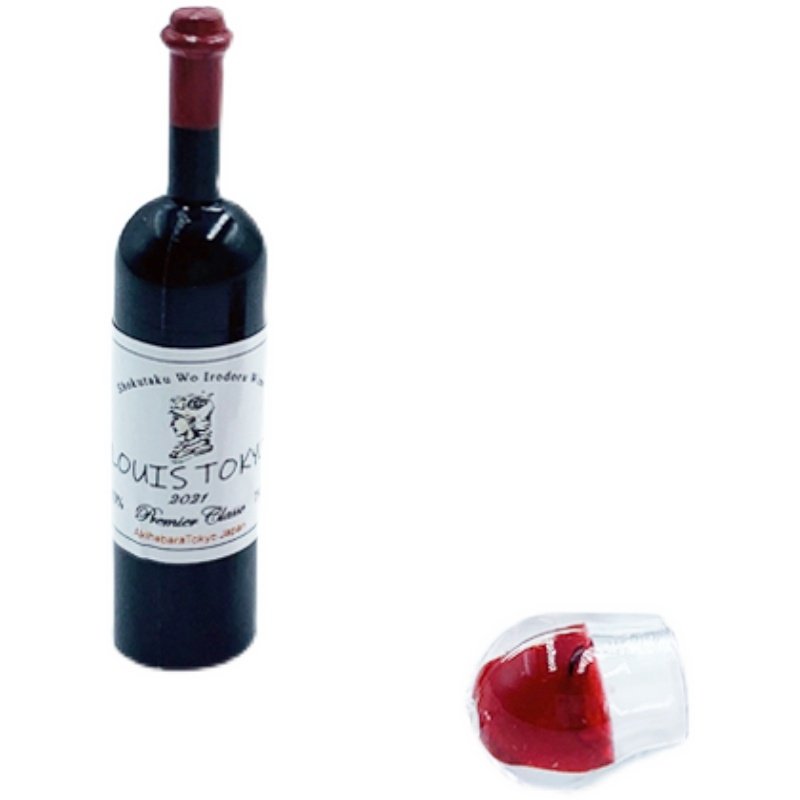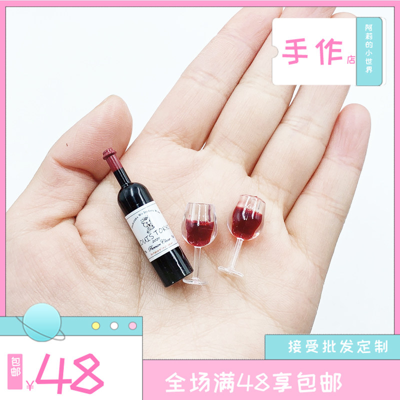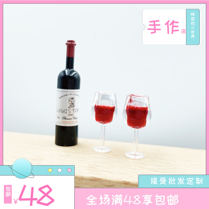 1:12娃娃屋dollhouse微缩食玩场景摆件 迷你仿真红酒瓶酒杯一套
