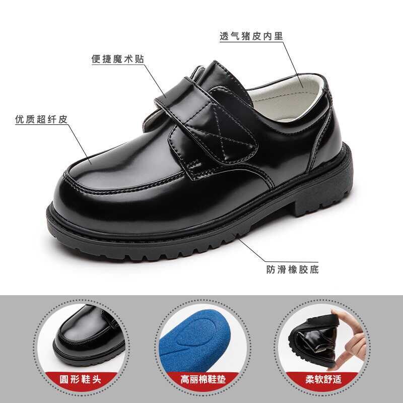 女童鞋子2024春秋款男童鞋黑色儿童单鞋演出校园学生表演小皮鞋