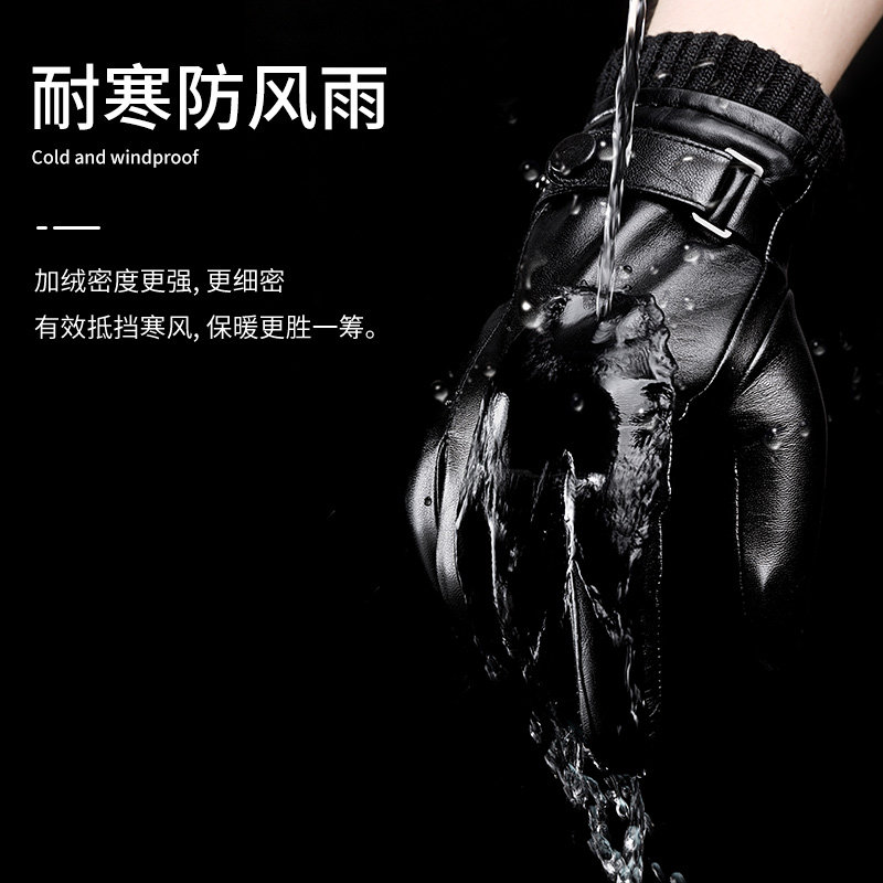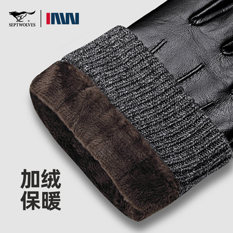 七匹狼羊皮手套男士冬季真皮加绒保暖防风防寒摩托车骑行触屏手套