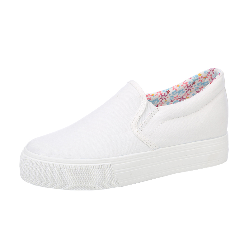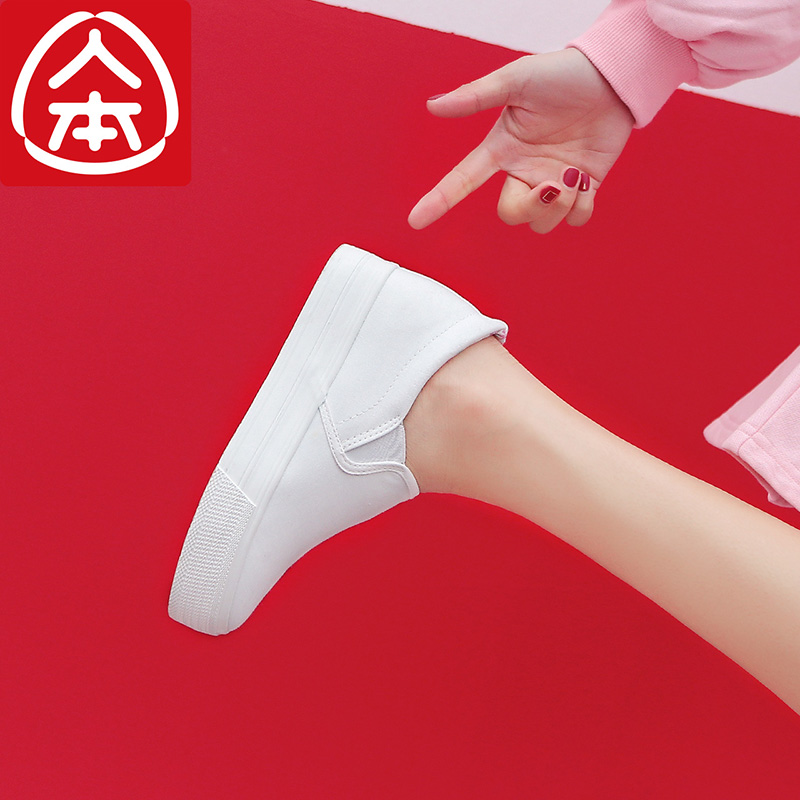 人本帆布鞋白色一脚蹬春季内增高