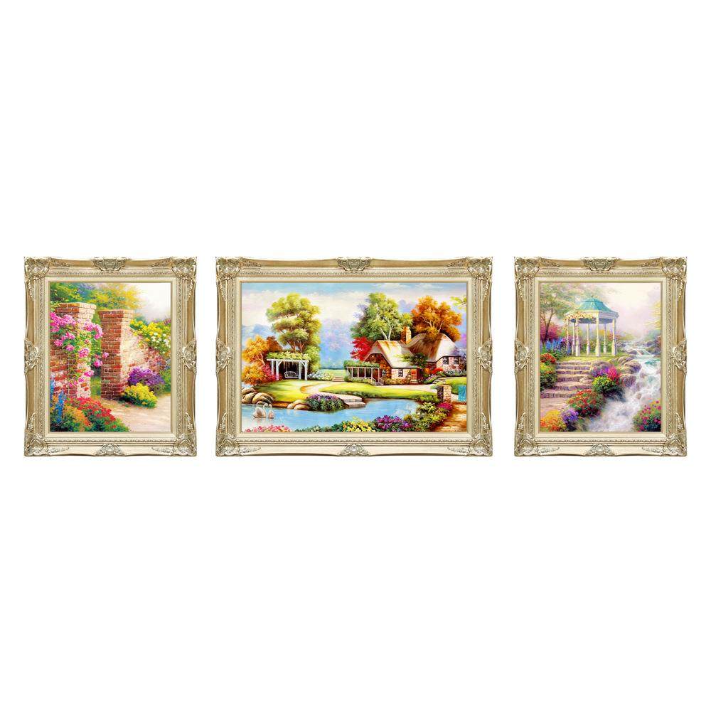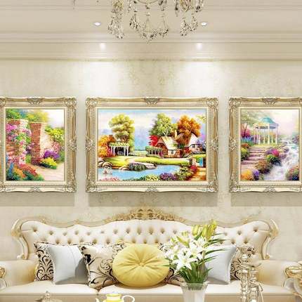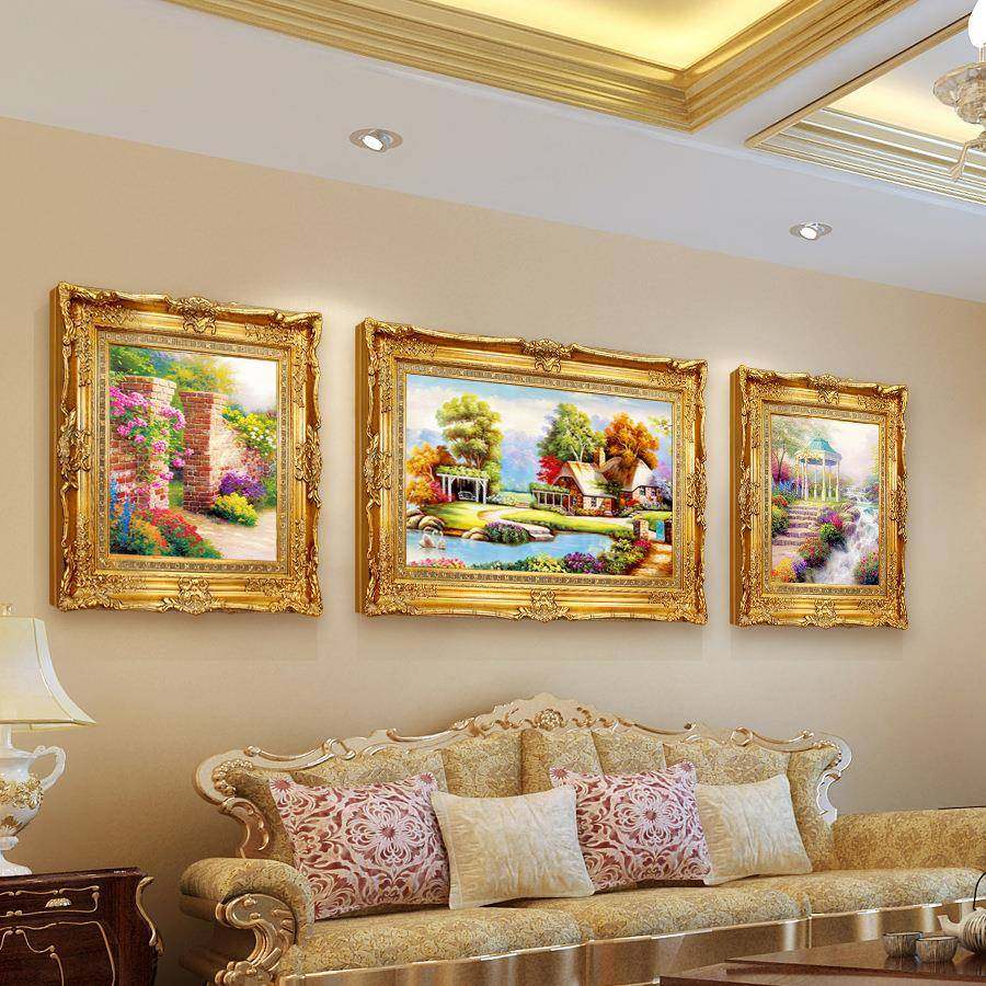 客厅挂画三联大气装饰画风景美式壁画轻奢挂画简欧欧式油画