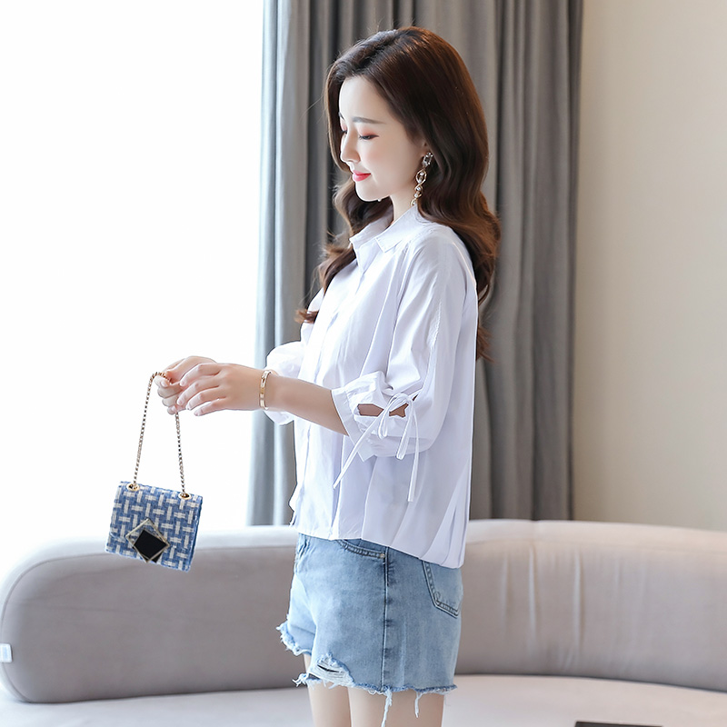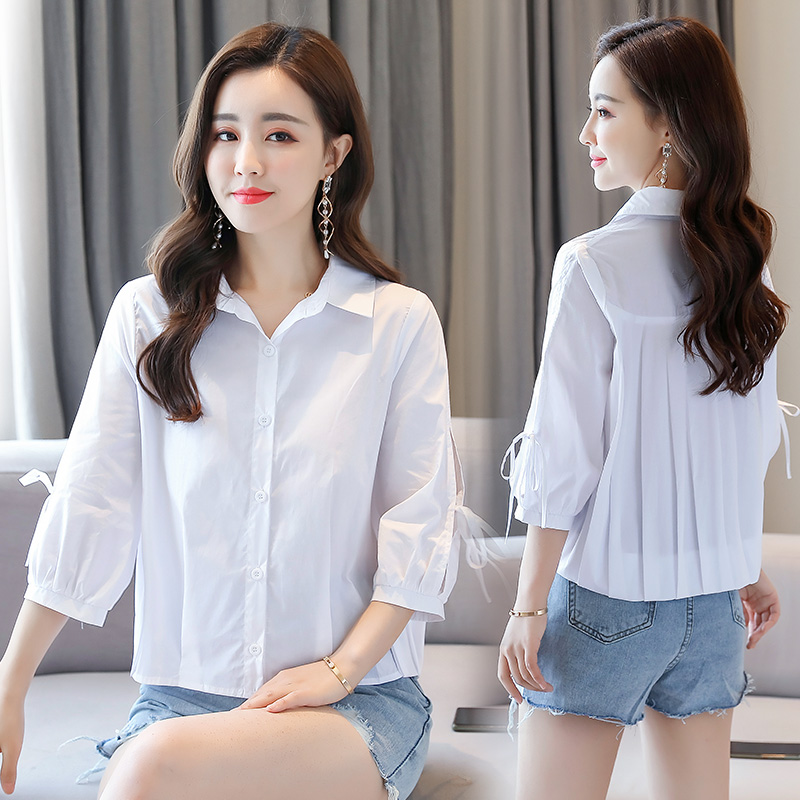 小个子女生白衬衫女七分袖夏装新款心机设计感韩版宽松纯棉衬衣