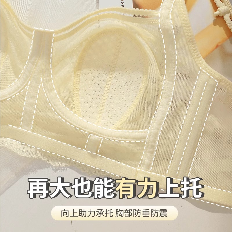 内衣女超薄款夏季大胸显小胸防下垂收副乳聚拢文胸罩夏天薄款蕾丝