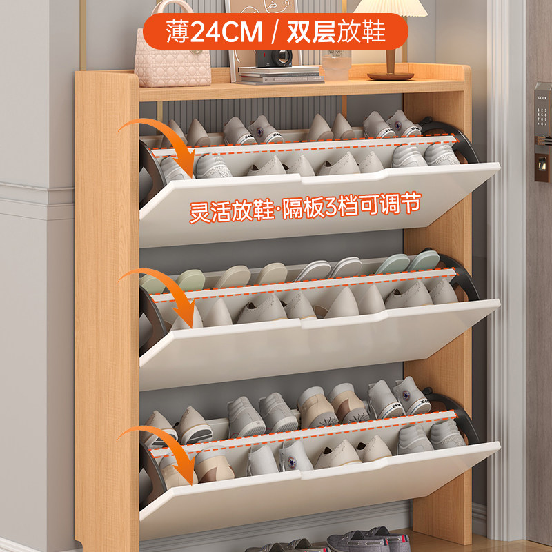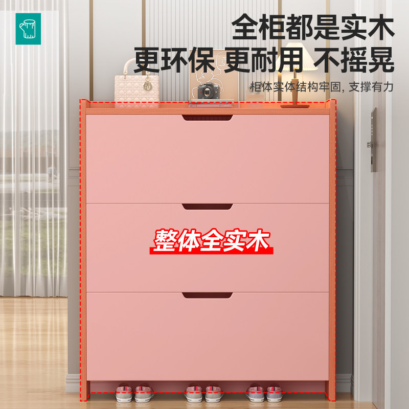 实木超薄翻斗鞋柜家用门口2025新款楼道入户大容量玄关柜小窄鞋架