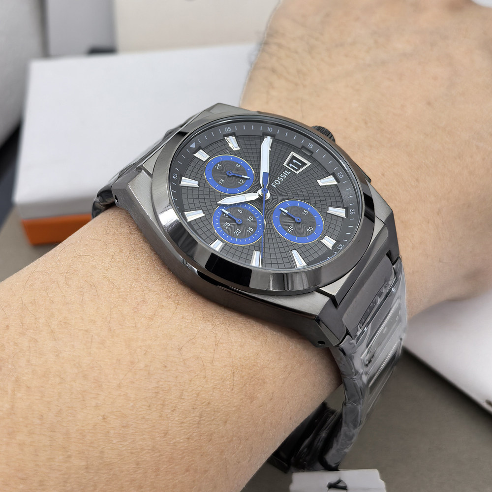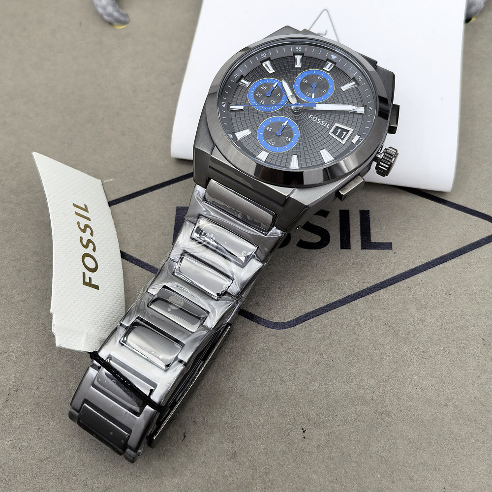 FOSSIL手表不锈钢灰黑色三眼计时商务休闲石英机芯防水男表FS5830