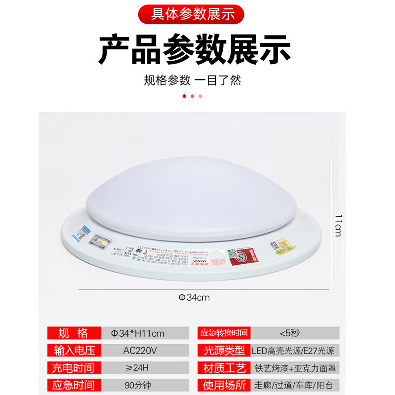 敏华电工M-ZFZD-E5W消防应急吸顶灯声光控人体感应停电照明面包灯