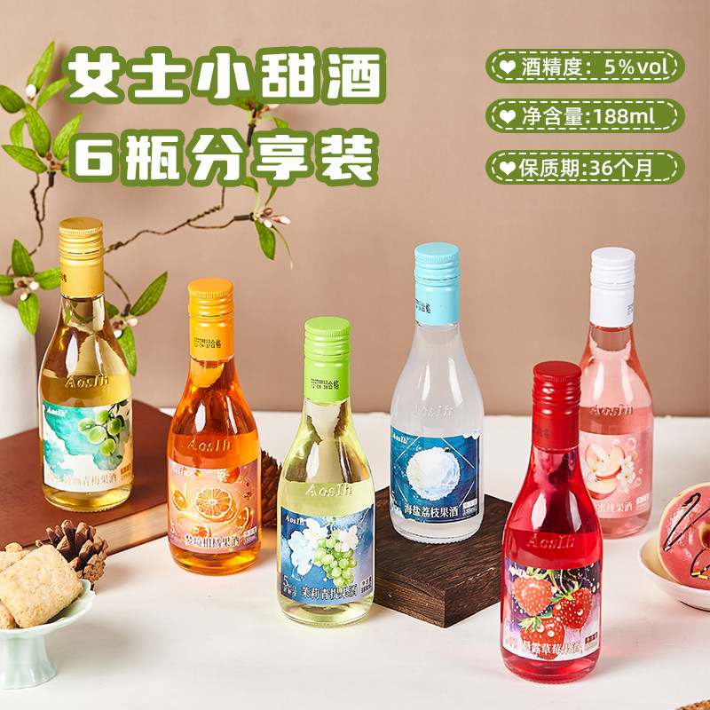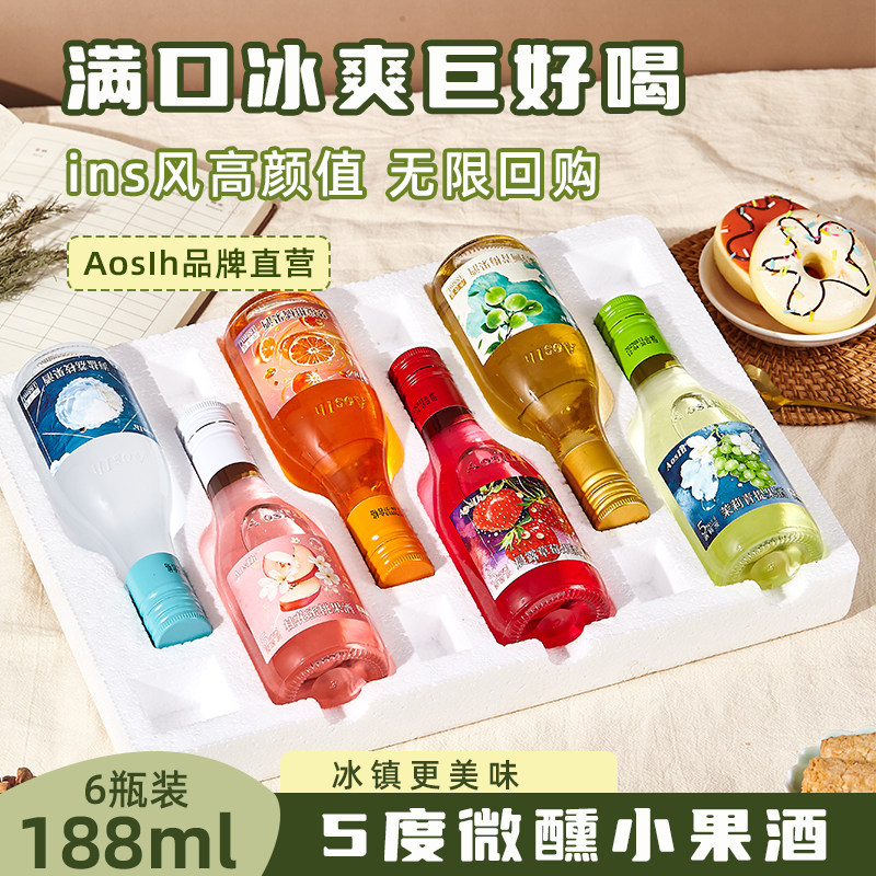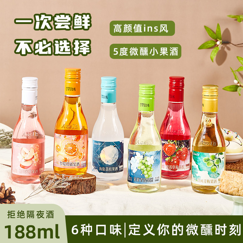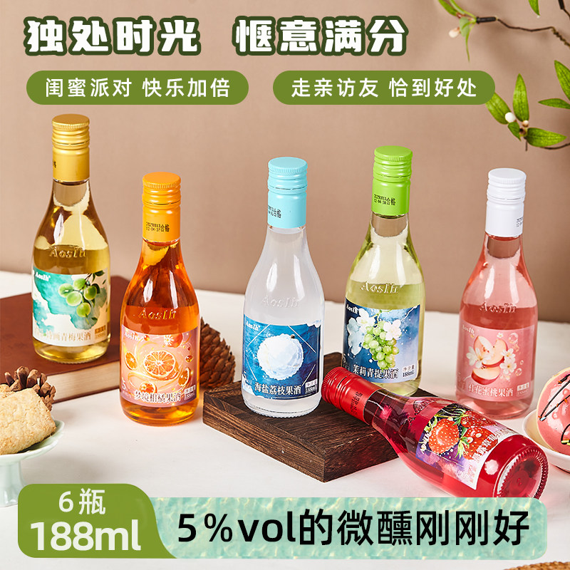 果酒低度微醺女士小甜酒葡萄草莓蜜桃荔枝青梅柑橘水果酒晚安礼盒