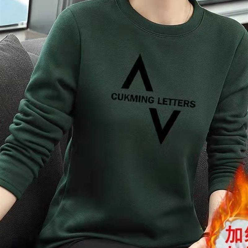 棉加绒加厚保暖打底衫卫衣女秋冬季新款宽松长袖t恤上衣领带夹