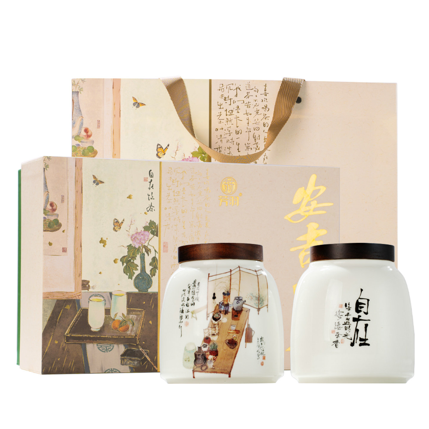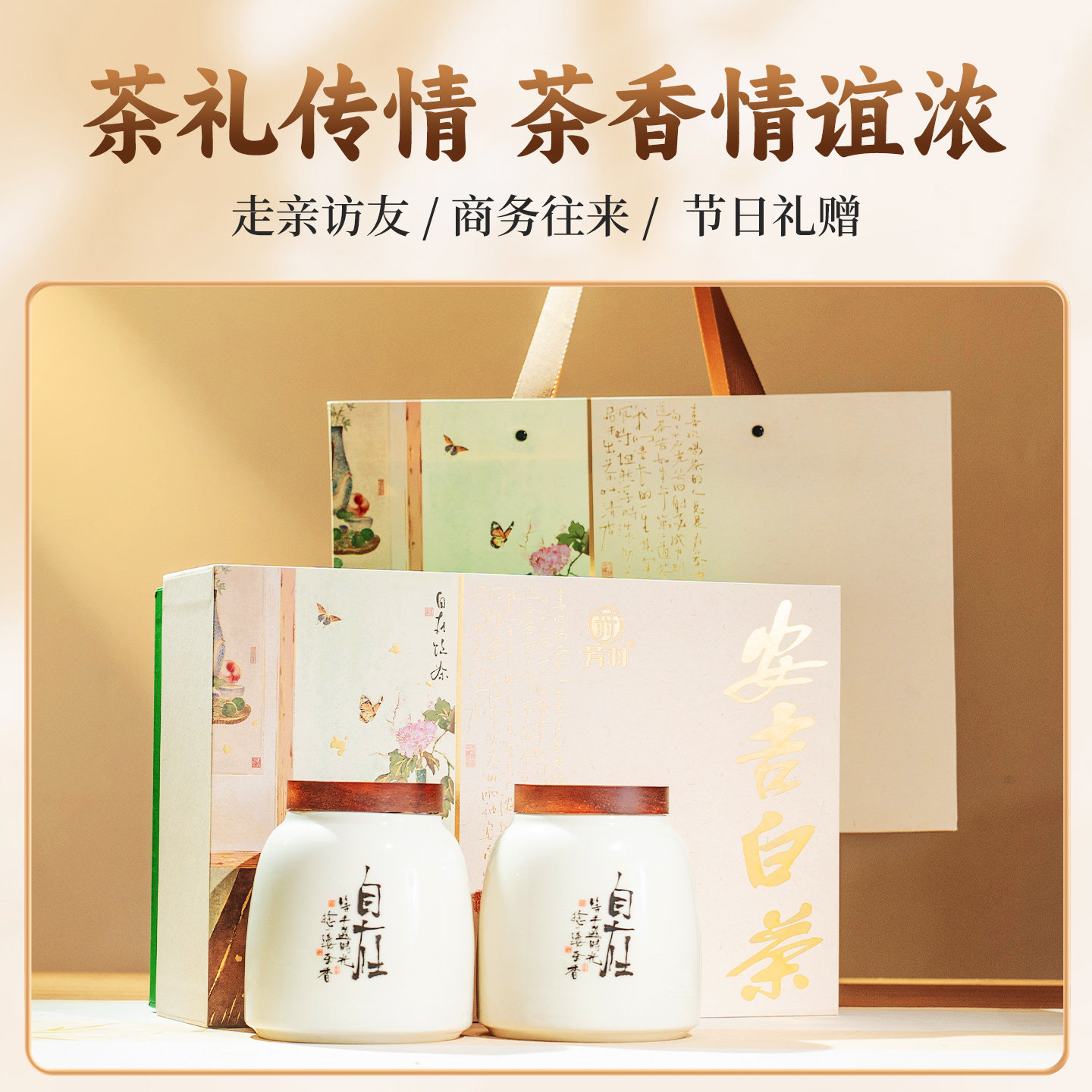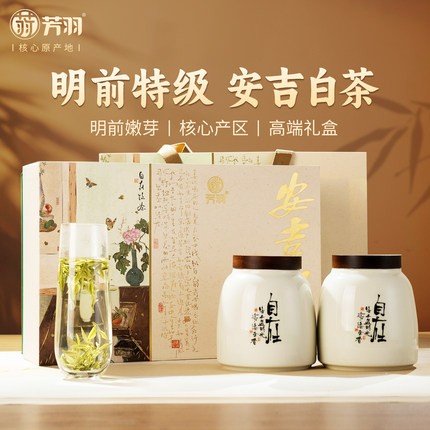 芳羽安吉白茶明前特级茶叶春茶高端绿茶送礼送长辈陶瓷礼盒装200g