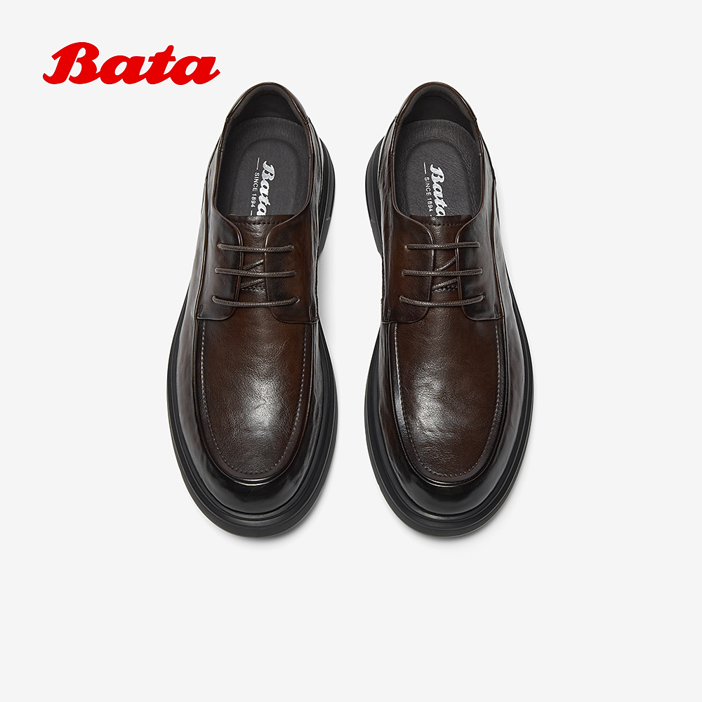 Bata休闲皮鞋男2025冬季新款百搭牛皮通勤商务厚底皮鞋51371DM5