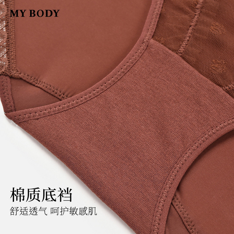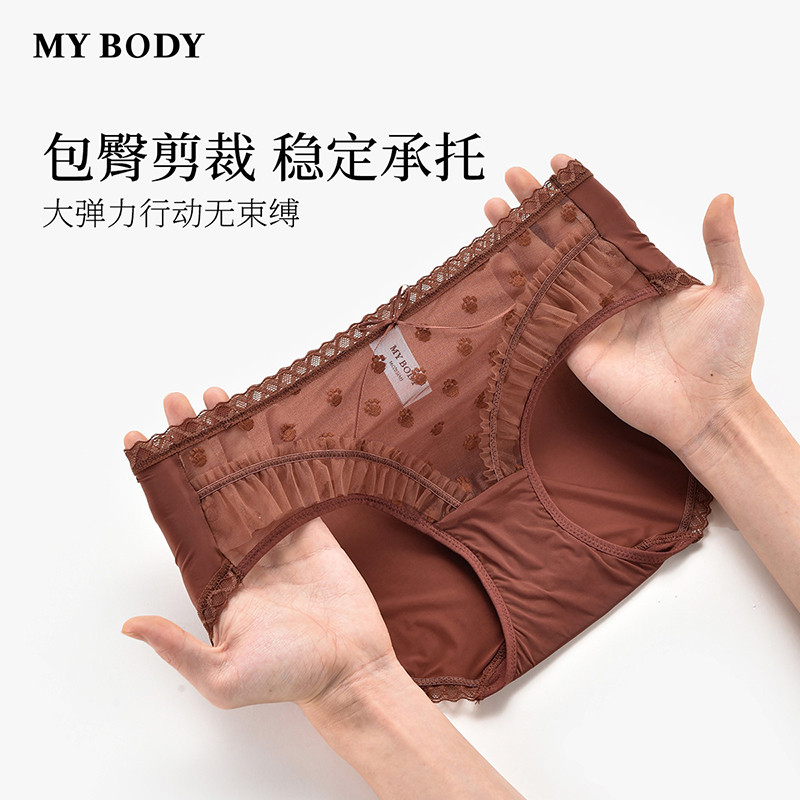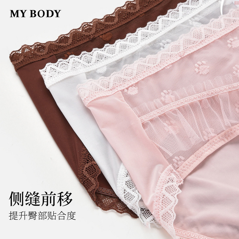 3件129|商场同款MYBODY内裤女纯棉底档提花蕾丝性感中低腰三角裤