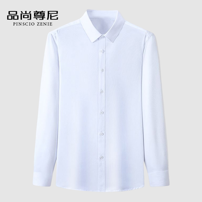 【柔软亲肤】长袖商务正装衬衫春秋休闲宽松白色衬衣男中年爸爸装