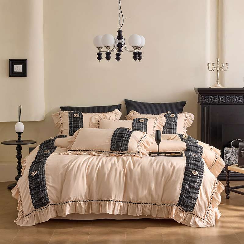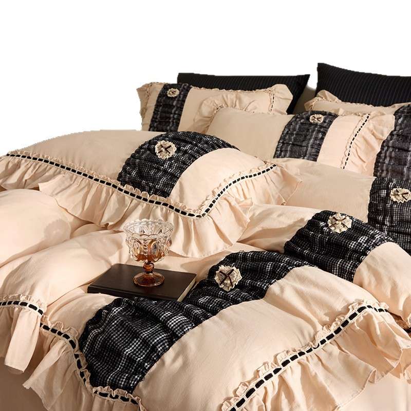 法式公主风全棉双层纱四件套纯棉花边被套床单亲肤少女心床上用品