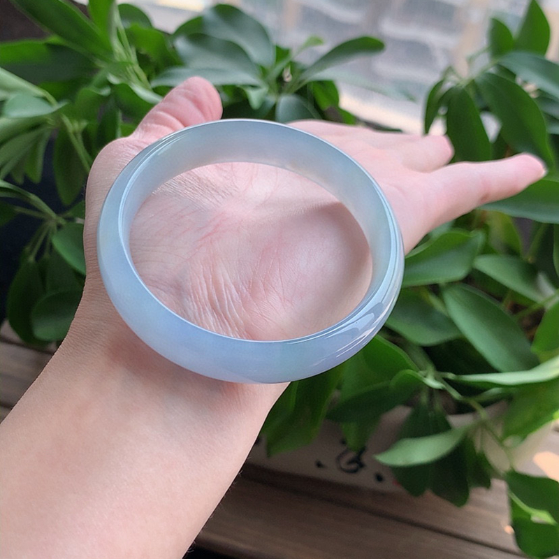 缅甸A货天然翡翠 老坑冰种紫罗兰正装正圈手镯55-56圈口