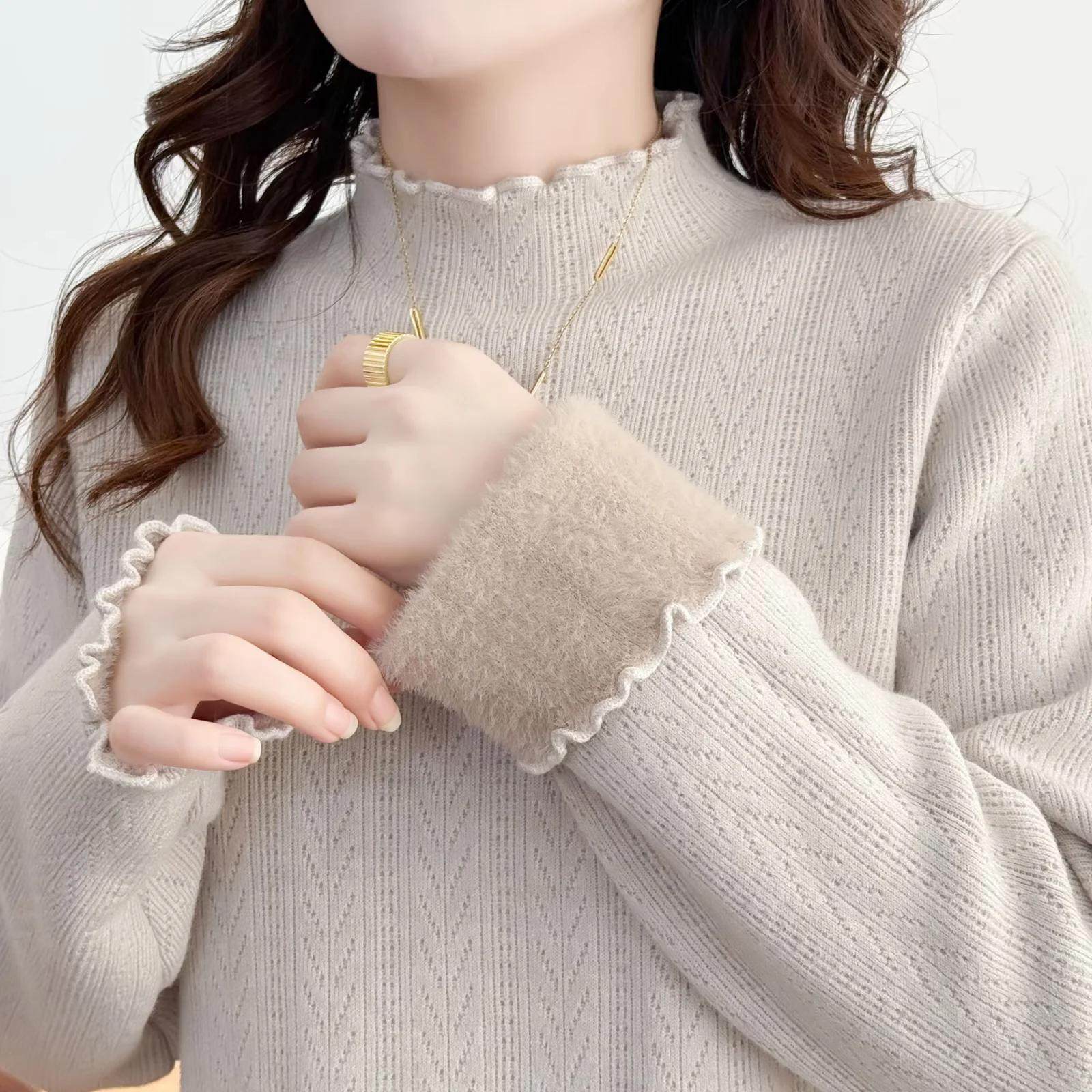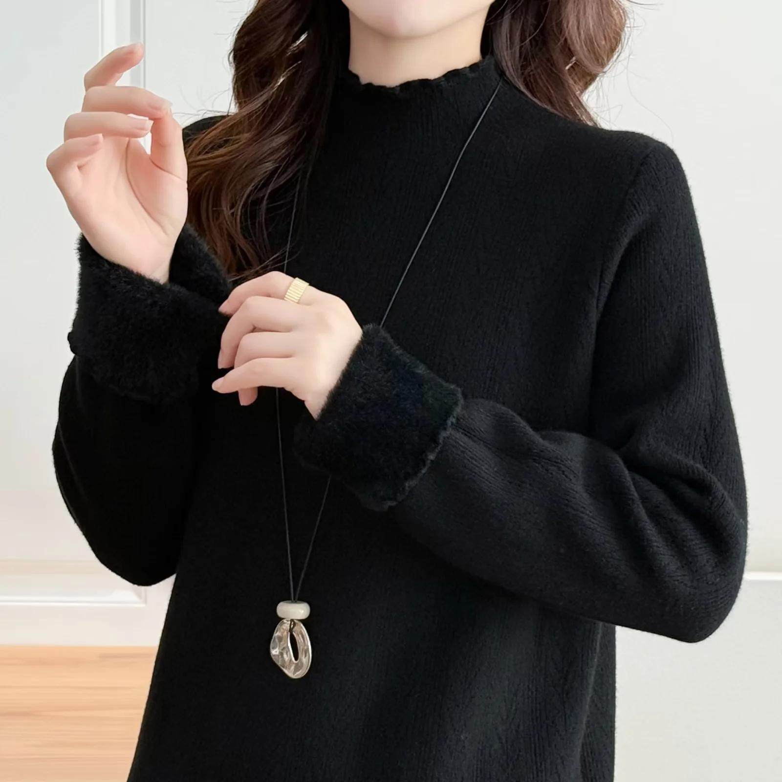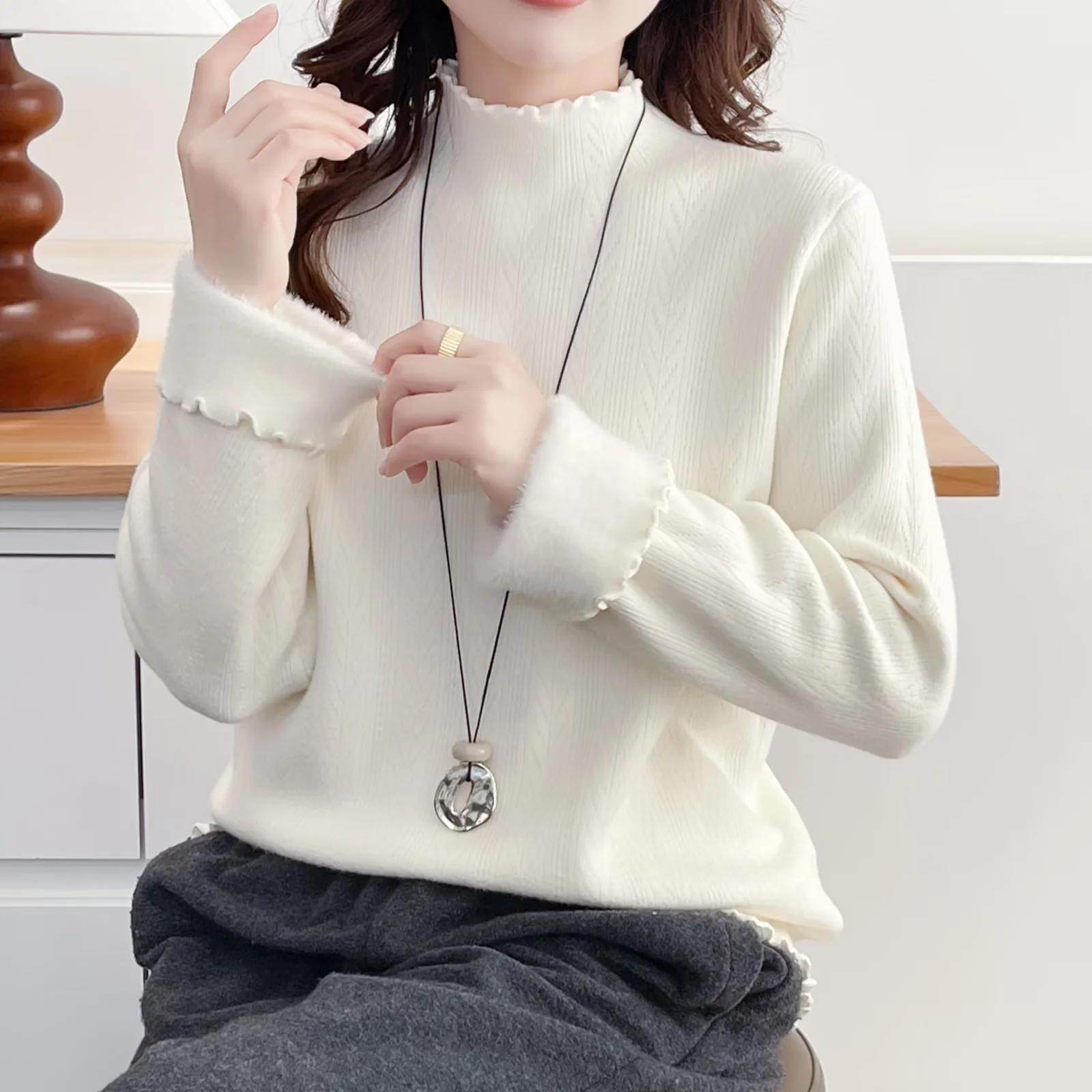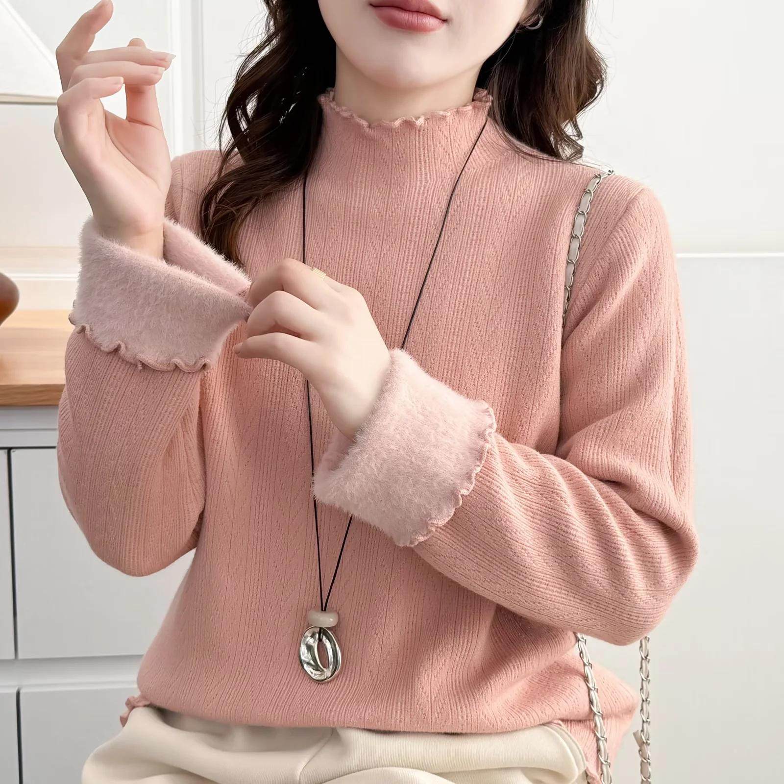 胖妹妹冬装2025大码女装一体绒胖mm花边半高领百搭上衣中年毛衣女