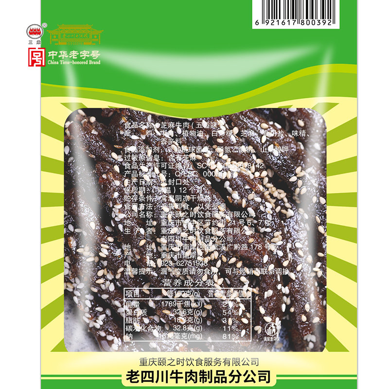 三鼎60g芝麻重庆四川特产牛肉干