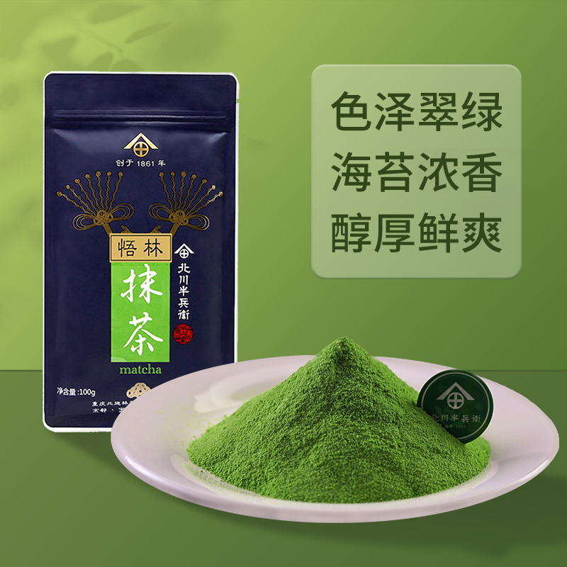 北川半兵卫抹茶粉烘焙冲饮甜品泡水拿铁奶茶国产抹茶原料悟林100g