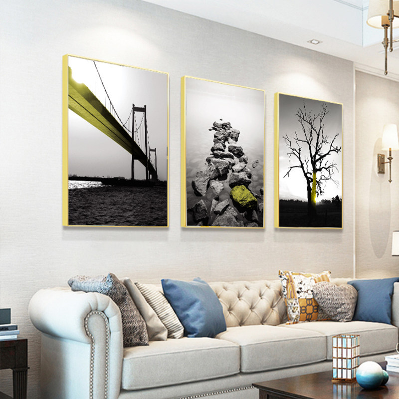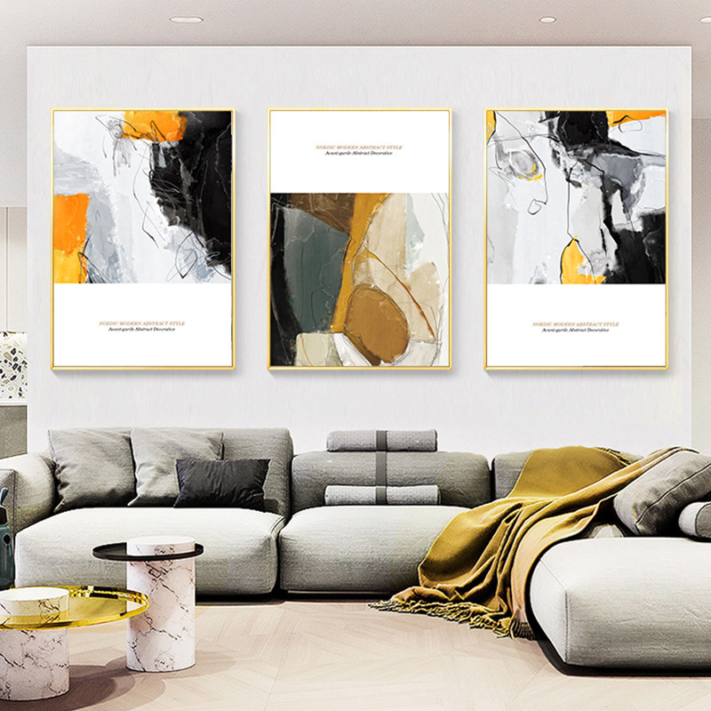 现代简约客厅背景墙装饰画抽象大气三联挂画简欧玄关床头墙面挂画