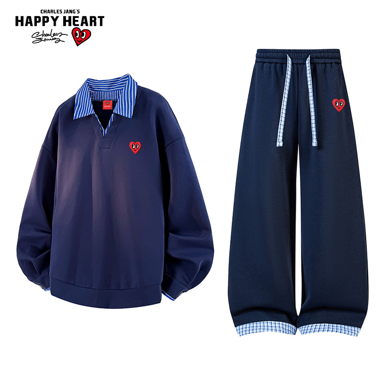 查尔斯桃心格纹V领卫衣套装男