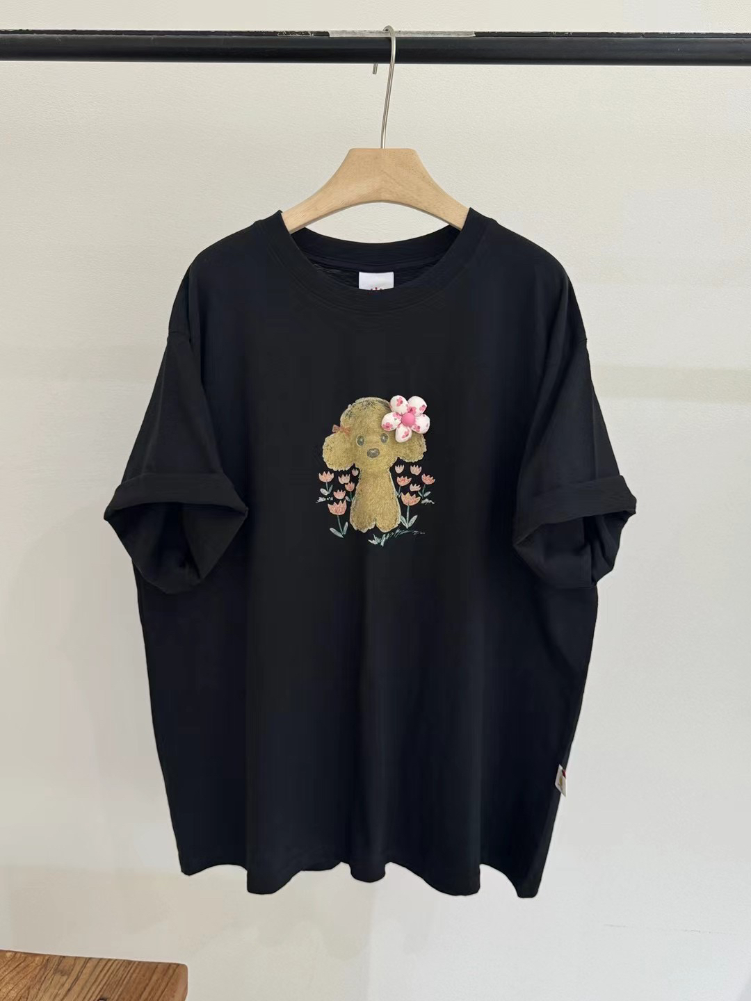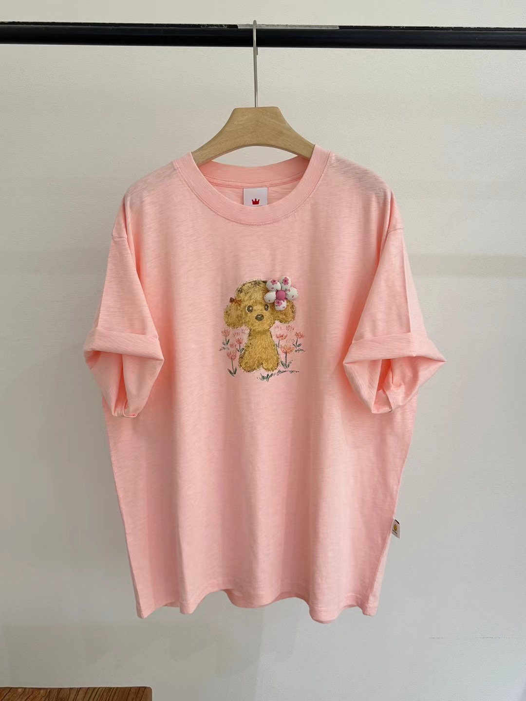 皇冠夏季轻薄竹节棉透气卡通小狗宽松大版型慵懒风中长款短袖t恤