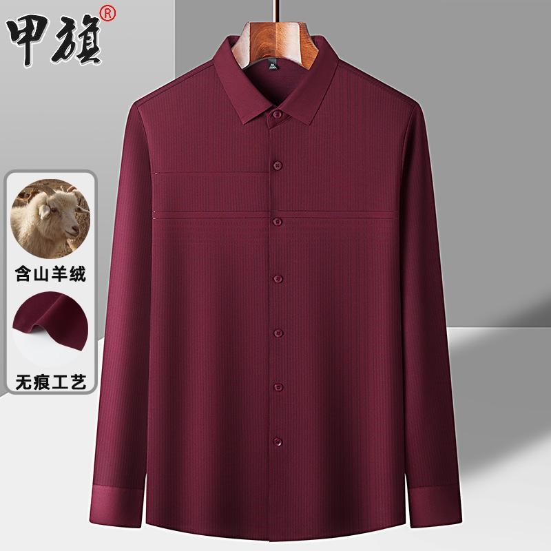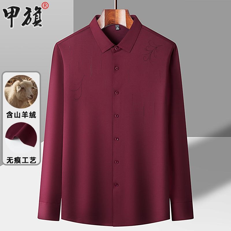 2025红色喜爸爸婚宴装衬衫中老年男士喜公公春秋婚礼长袖衬衣