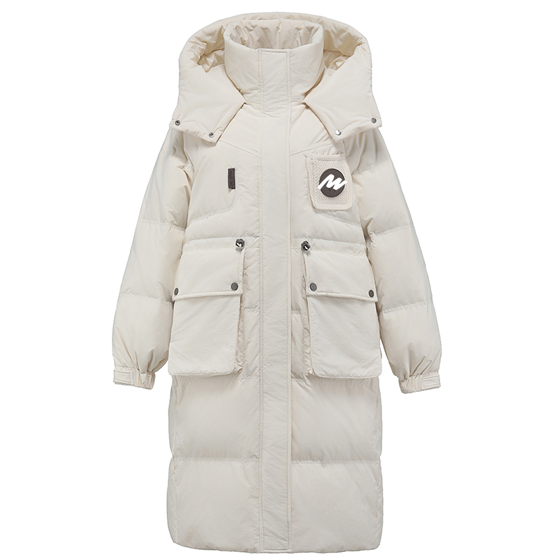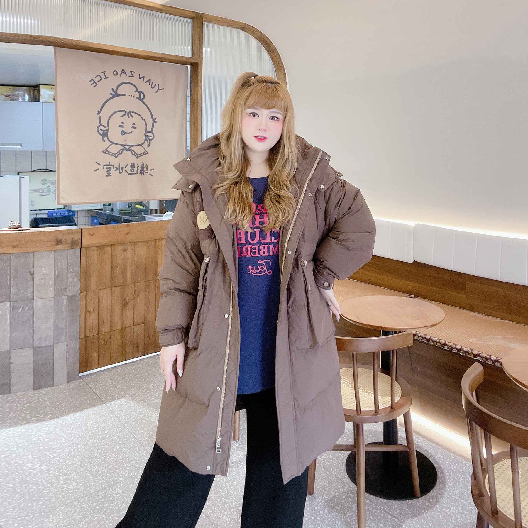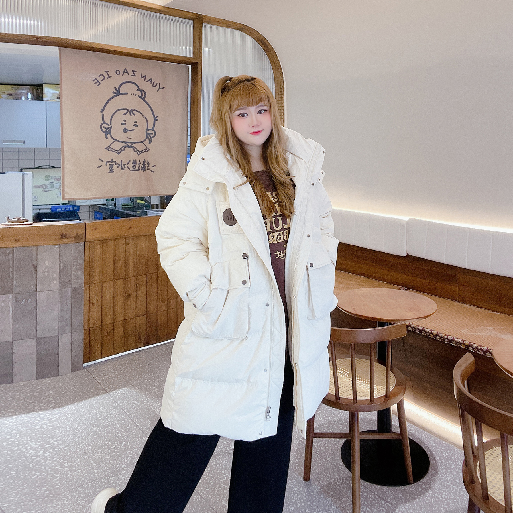韩系显瘦休闲大口袋中长款加厚外套胖莹莹大码女装收腰连帽羽绒服