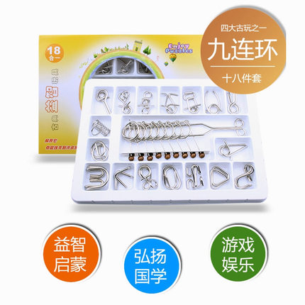 儿童九连环套装玩具解环解扣18件套益智成人智力解环学生教学教具