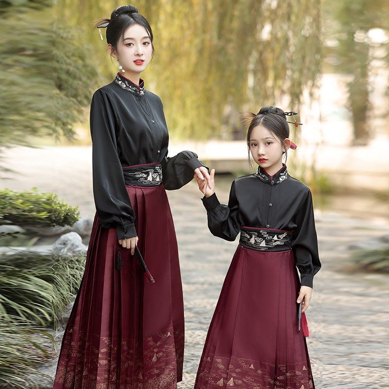 网红亲子装马面裙2024新款春夏母女装中国风汉服连衣裙国潮两件套