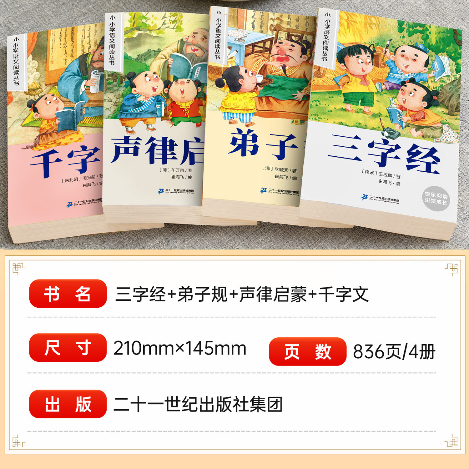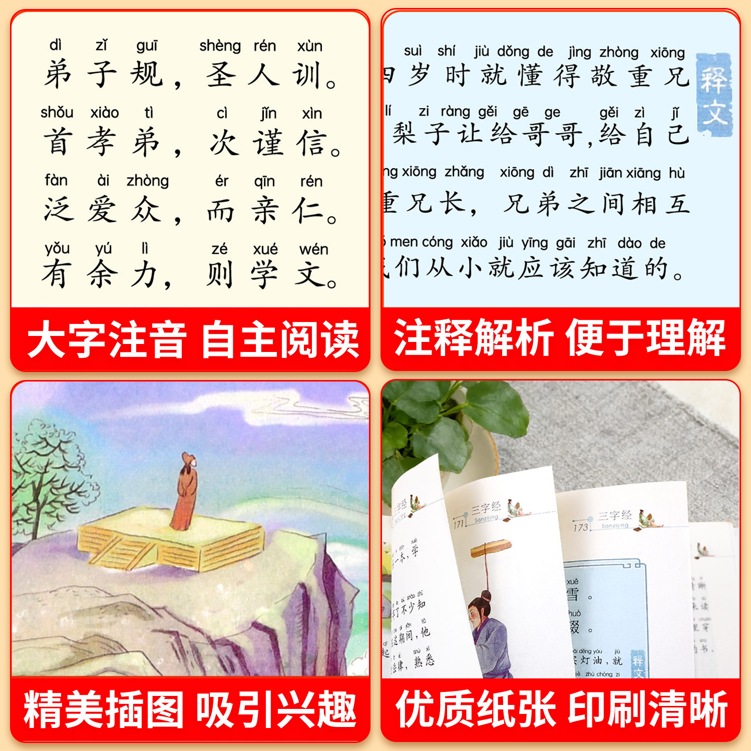 【注音版】千字文三字经弟子规声律启蒙一二年级小学生低年级阅读课外书籍语文基础阅读丛书三年级经典读物书带拼音的读书吧故事书