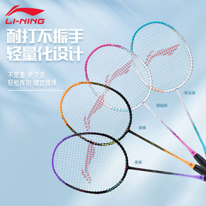 官方正品李宁羽毛球拍雷霆9超轻单双拍套装全碳素纤维耐用型拍子