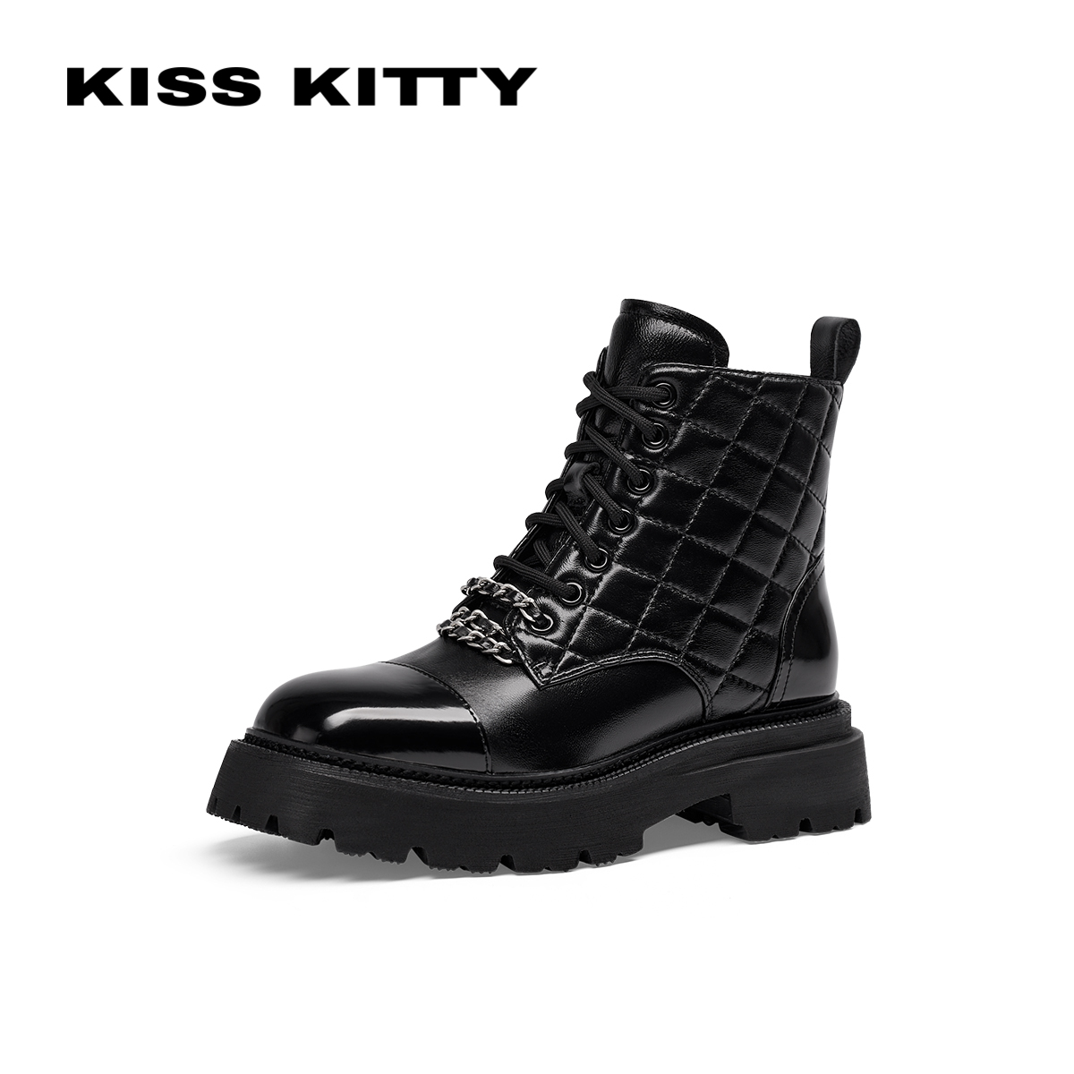 KISSKITTY秋冬羊皮小香风马丁靴方头厚底增高短靴女SA54518-36