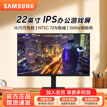 三星显示器22英寸高清办公电脑游戏100HZ外接显示屏S22D300GAC