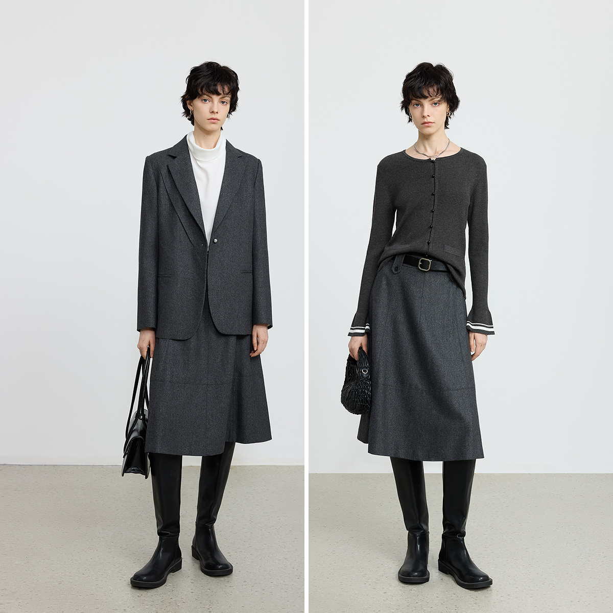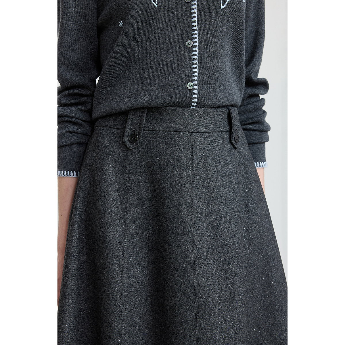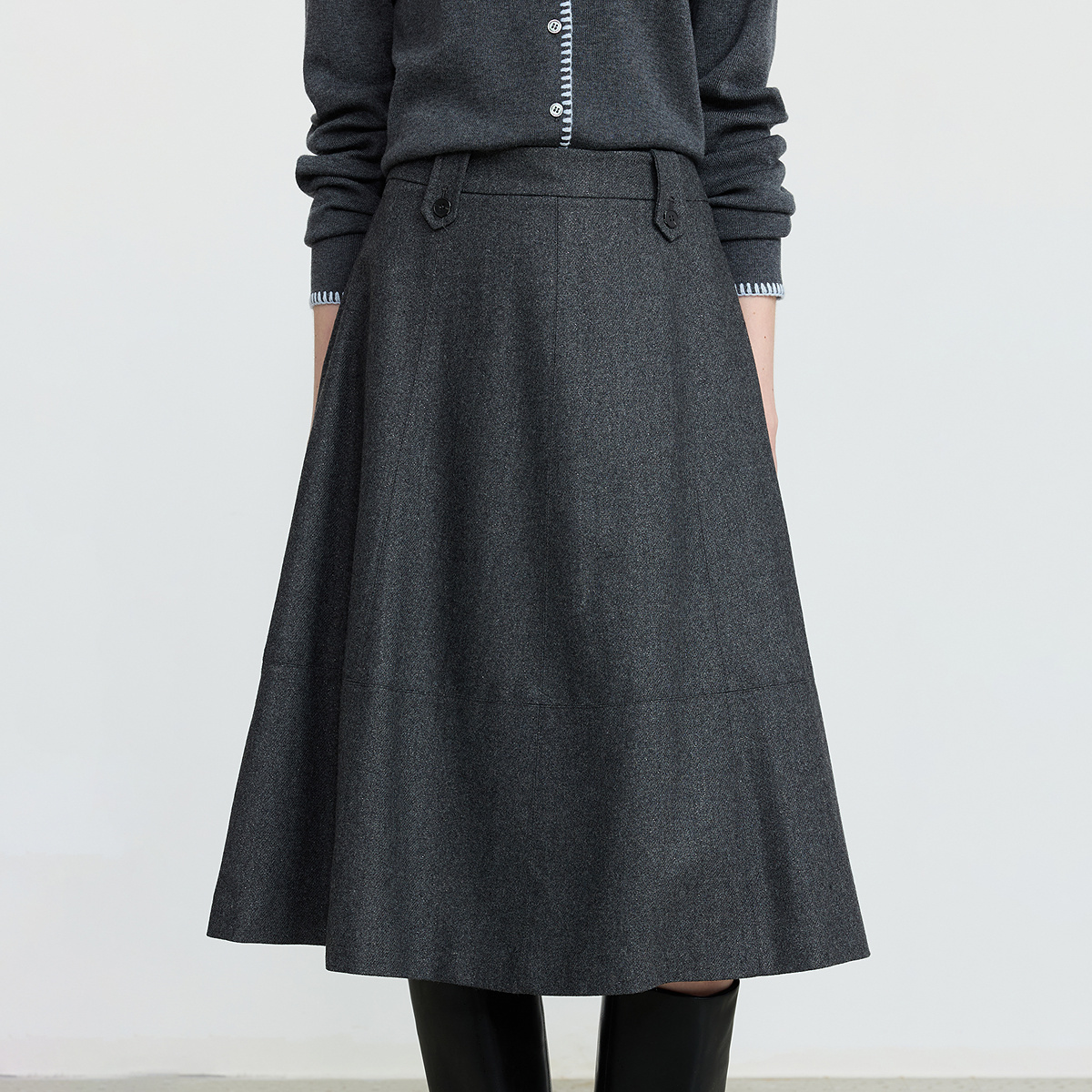 LILY2025冬新款女装格雷系橡筋腰休闲气质通勤加厚灰色半身裙伞裙