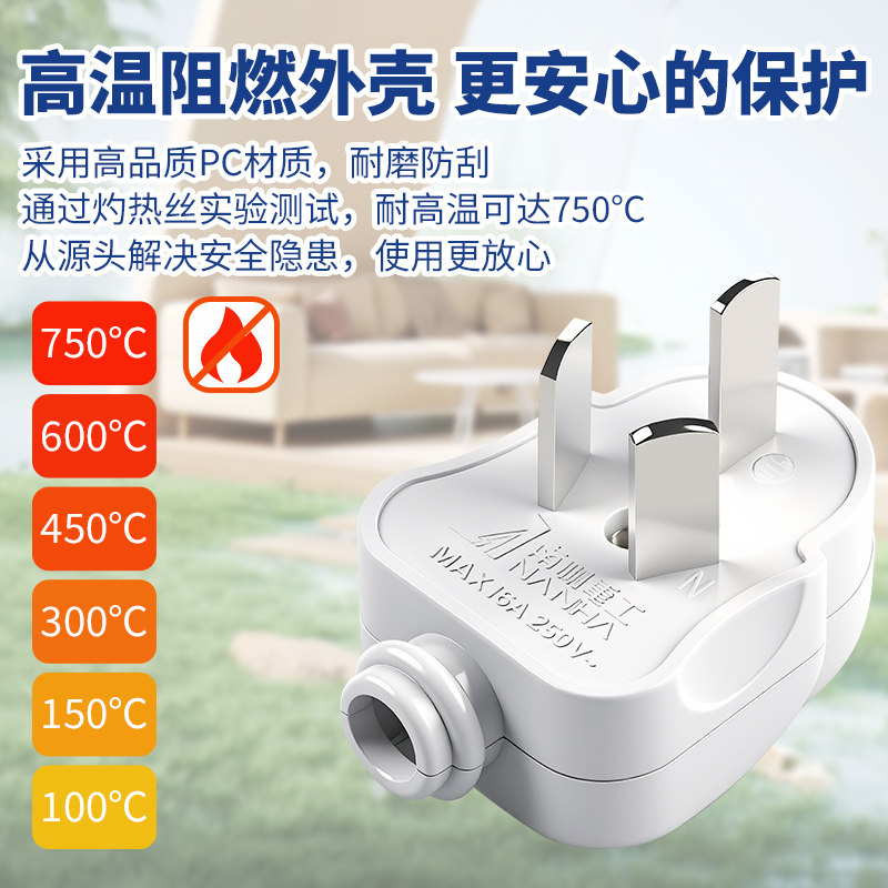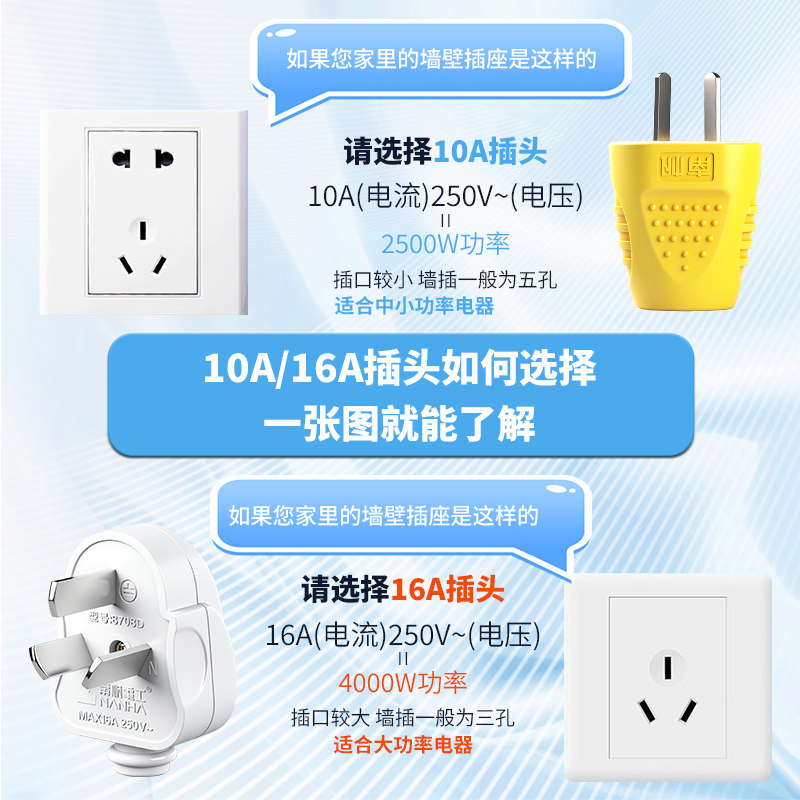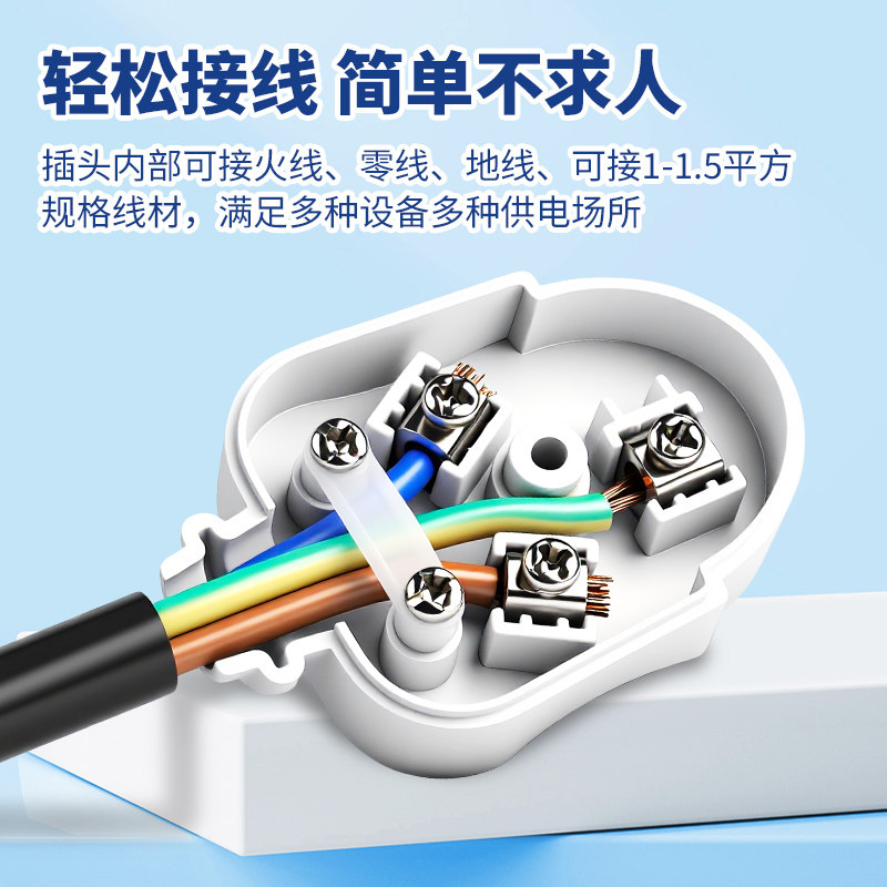 南帆单相电源二脚可旋转插头10a扁插头16a三脚电工插头电线三孔插