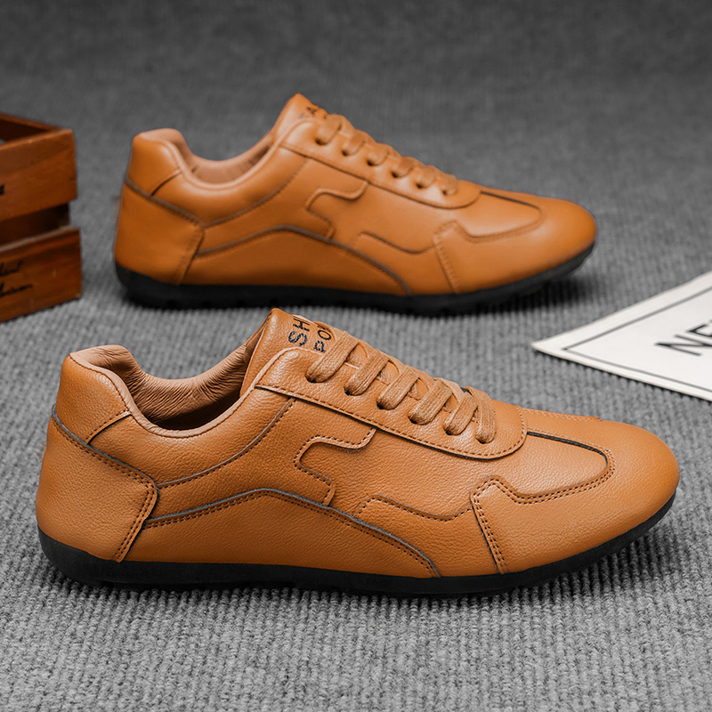 阿甘男鞋秋冬纯黑色休闲皮鞋男士上班工作板鞋运动防滑防水豆豆鞋