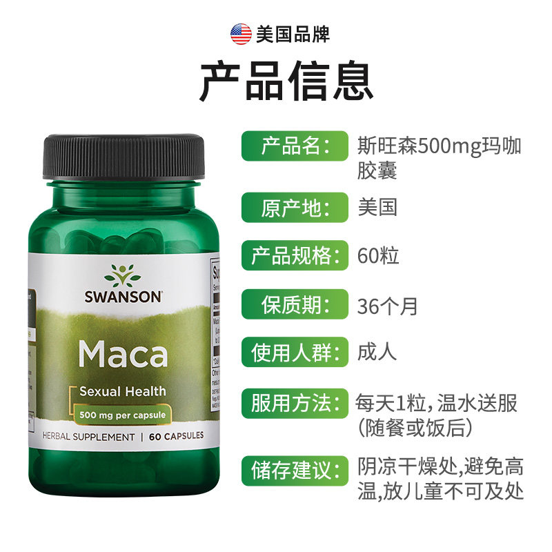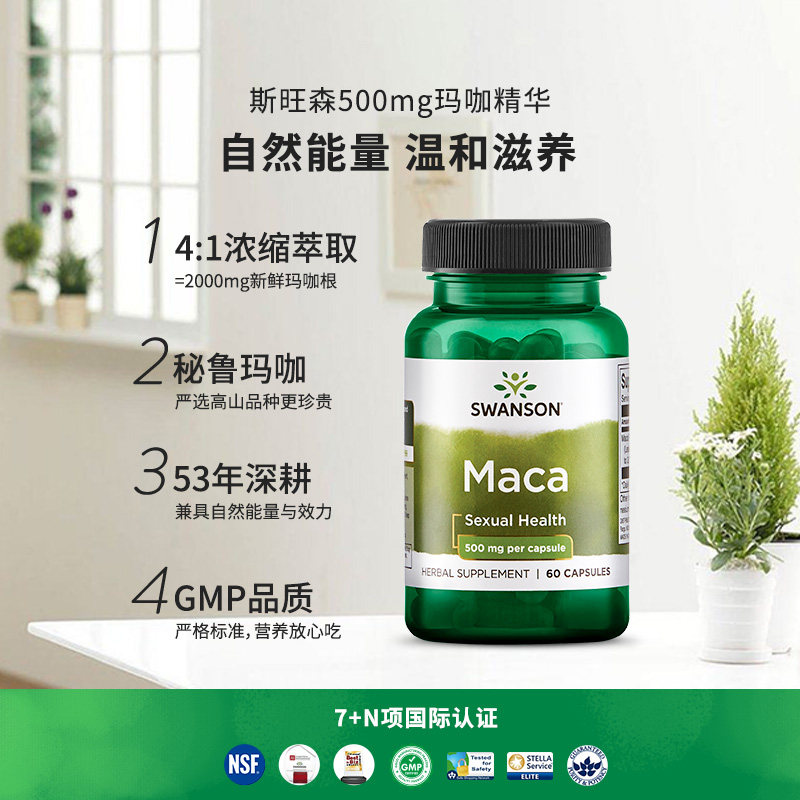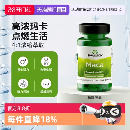 【自营】swanson斯旺森4:1浓缩玛卡片胶囊秘鲁黑玛咖片成人