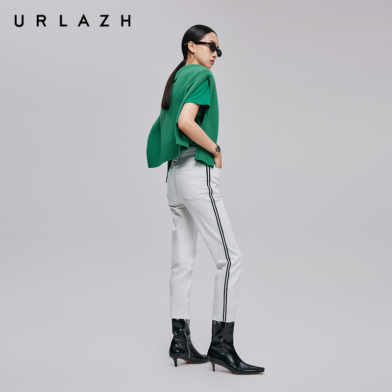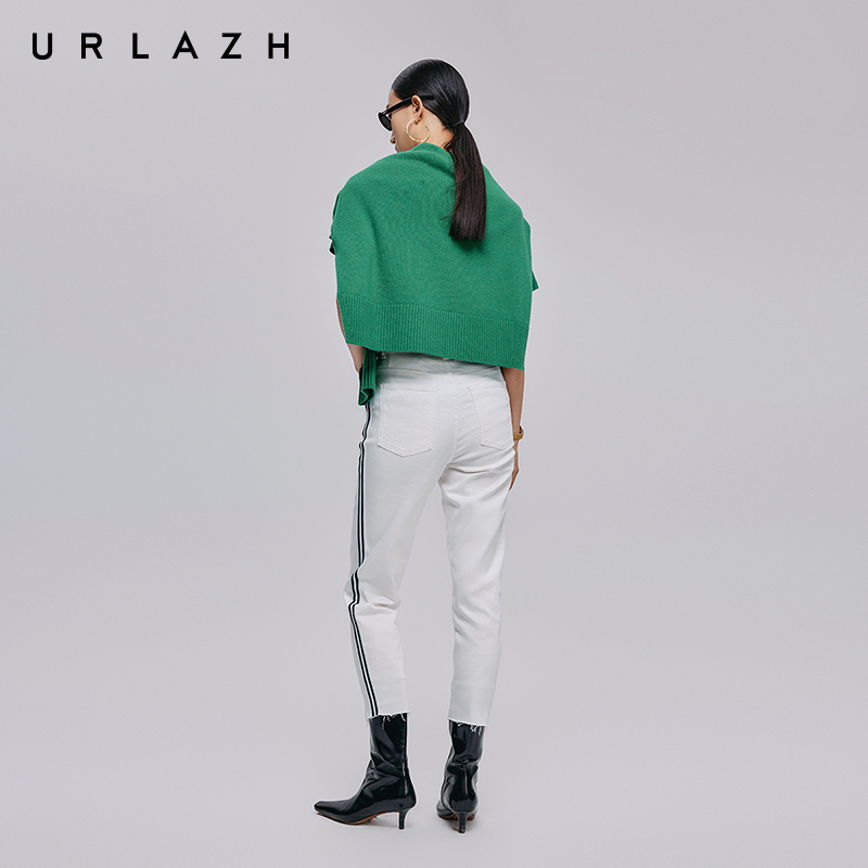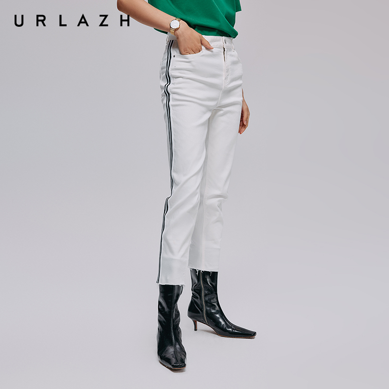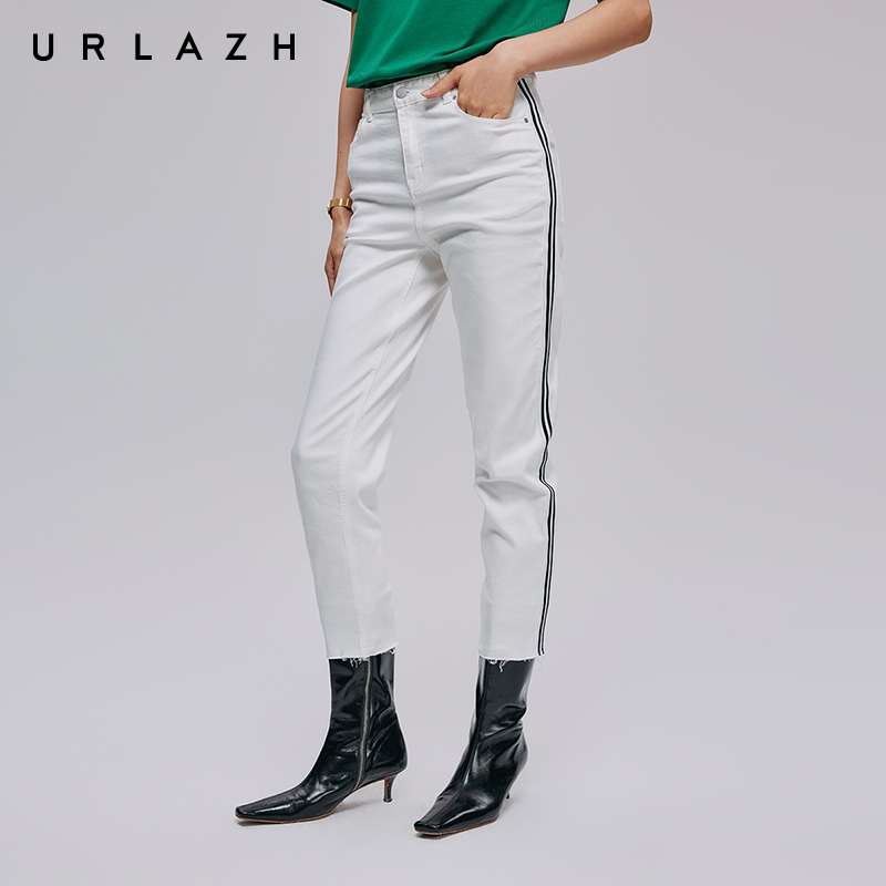 URLAZH有兰夏季新款修身高腰不规则休闲简约微弹白色百搭牛仔裤女