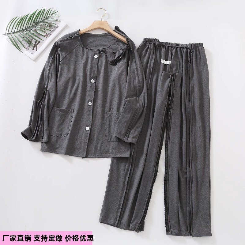夏纯棉一片式全开护理服骨折专用偏瘫失禁卧床老人透析针灸上衣裤