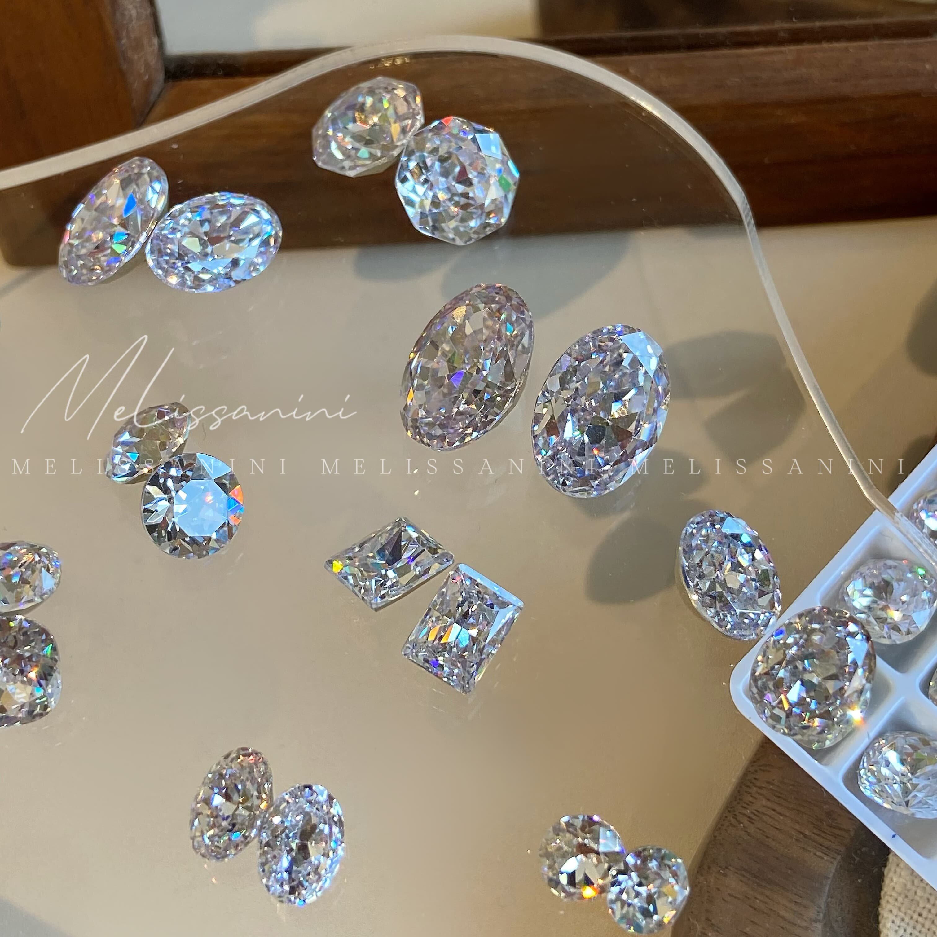 东洲【星锆系列】爆闪镀底锆石鸽子蛋冰糖肥方圆尖美甲饰品钻