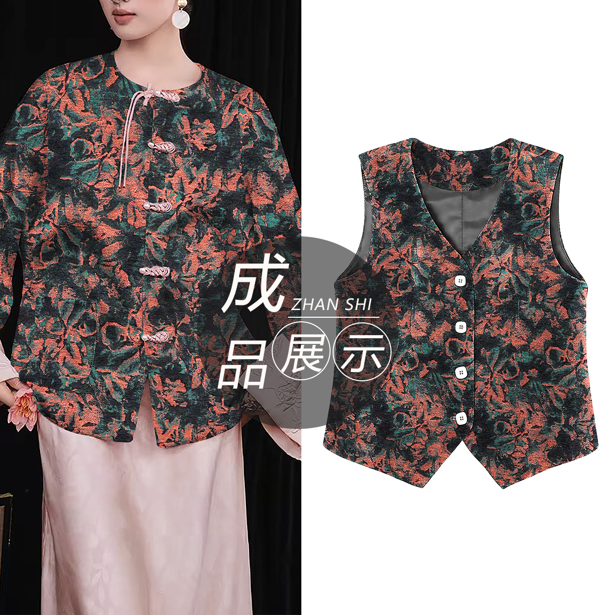 《SR041彩绘花》高档次丝绒雪尼尔提花布料做服装连衣裙上衣外套